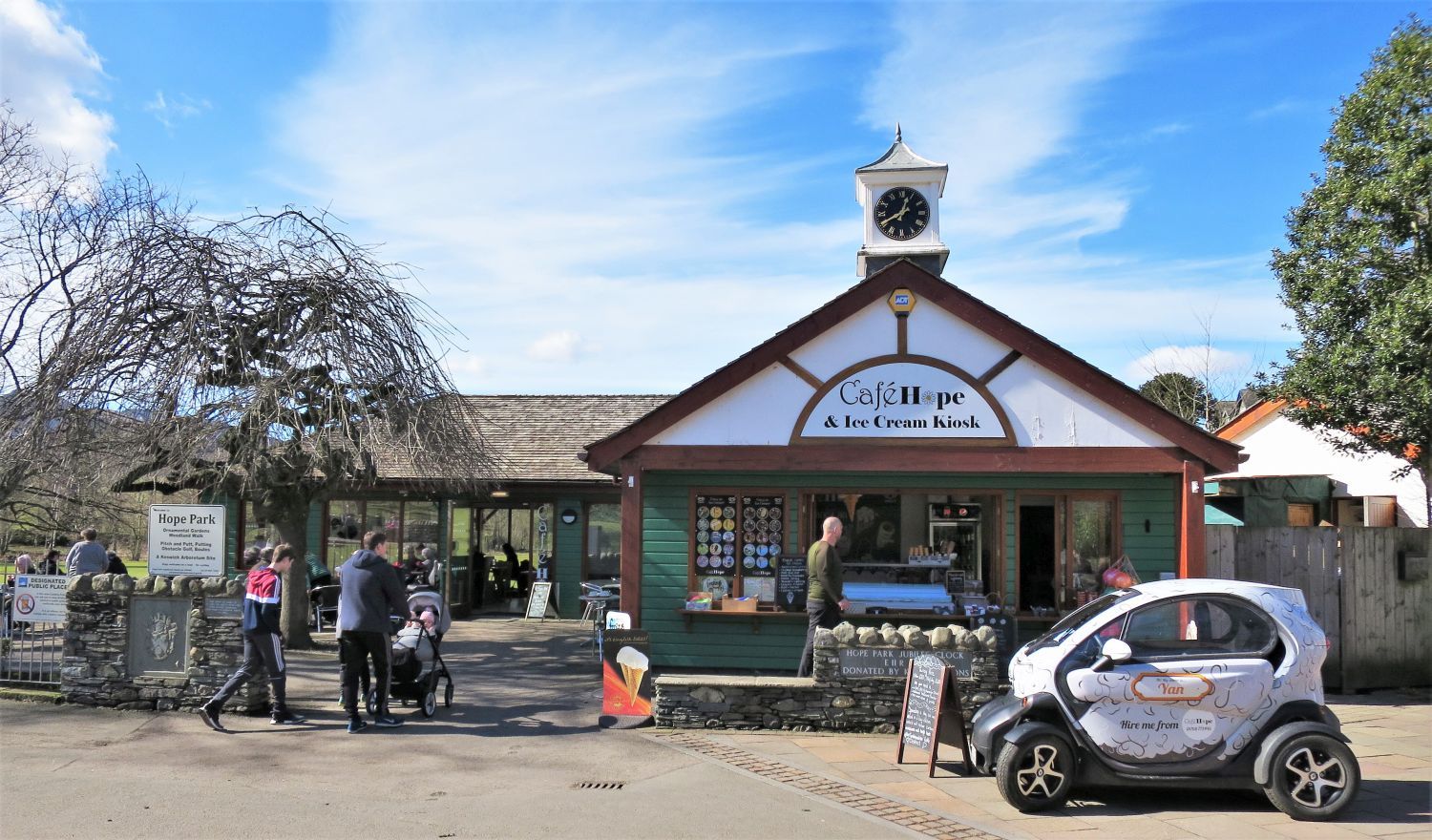 “The new kiosk and café, built 2012, is a fitting facility providing all manner of refreshments all year round. The clock tower, sitting proudly upon the kiosk, was kindly donated by Keswick Lions to commemorate Queen Elizabeth II’s Golden Jubilee”.