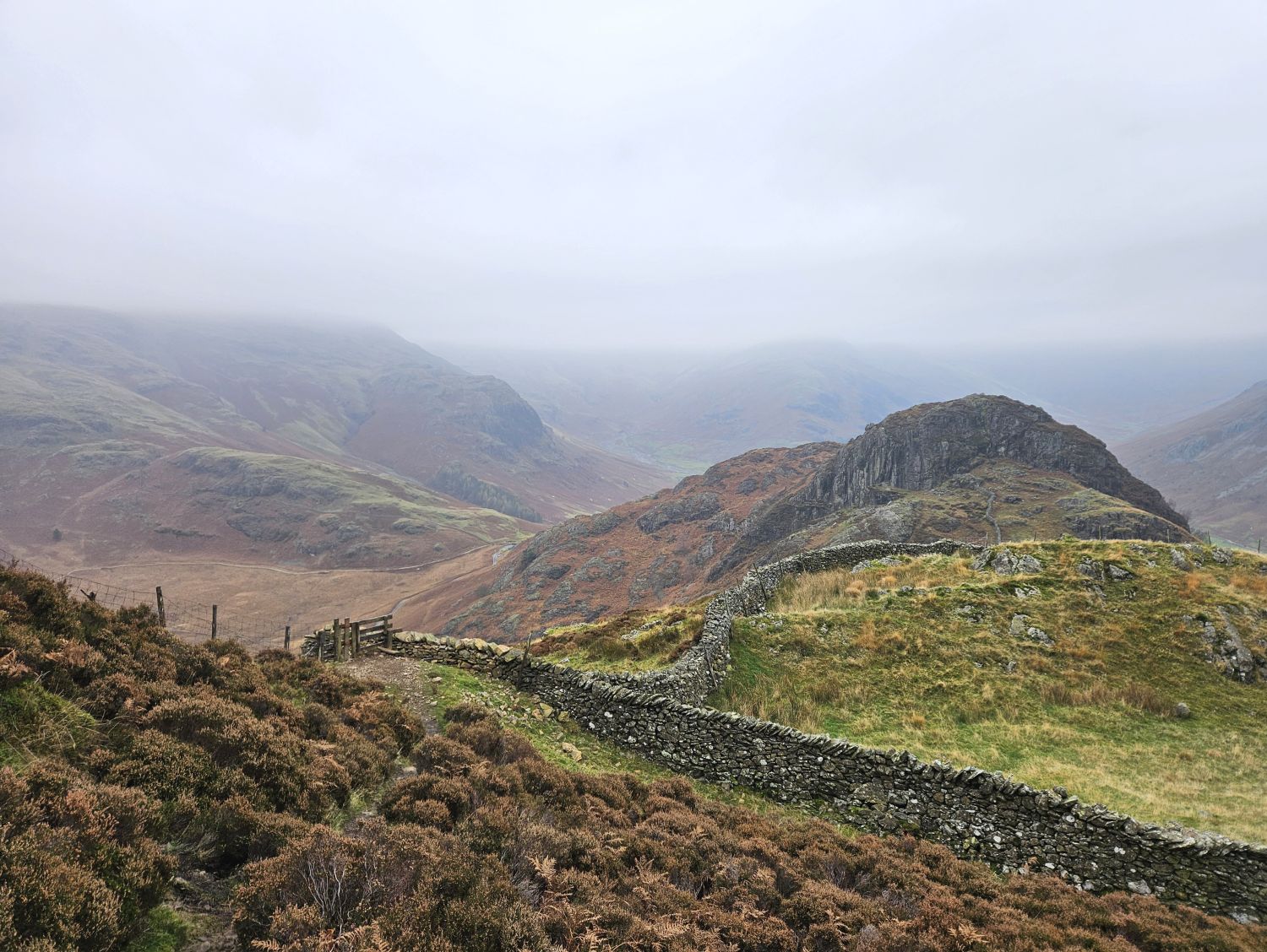 Most of my routes posted on my website are created from memory of walking individual paths over many years, so in theory I already have a good idea if a circular or linear walk produced from connecting them will work. I can then just head out on a sunny day and photograph the whole route. However, there are some paths that I’ve still not investigated, and to be able to include these on some circular walks I need to head out and test them first. For these recces I tend to go out on the murky days because the best weather days in the Lake District for photography are limited. So basically, I end up walking some routes that are included on the website twice. One to see how it feels, and one to photograph it. This route over Lingmoor Fell is a great example; the short ascent from Blea Tarn and then back onto the fell to include the quarries is a new path for me. Overall the walk is a little unorthodox, but it really works and takes in all the features of the fell. I will hopefully walk it again soon to photograph it.