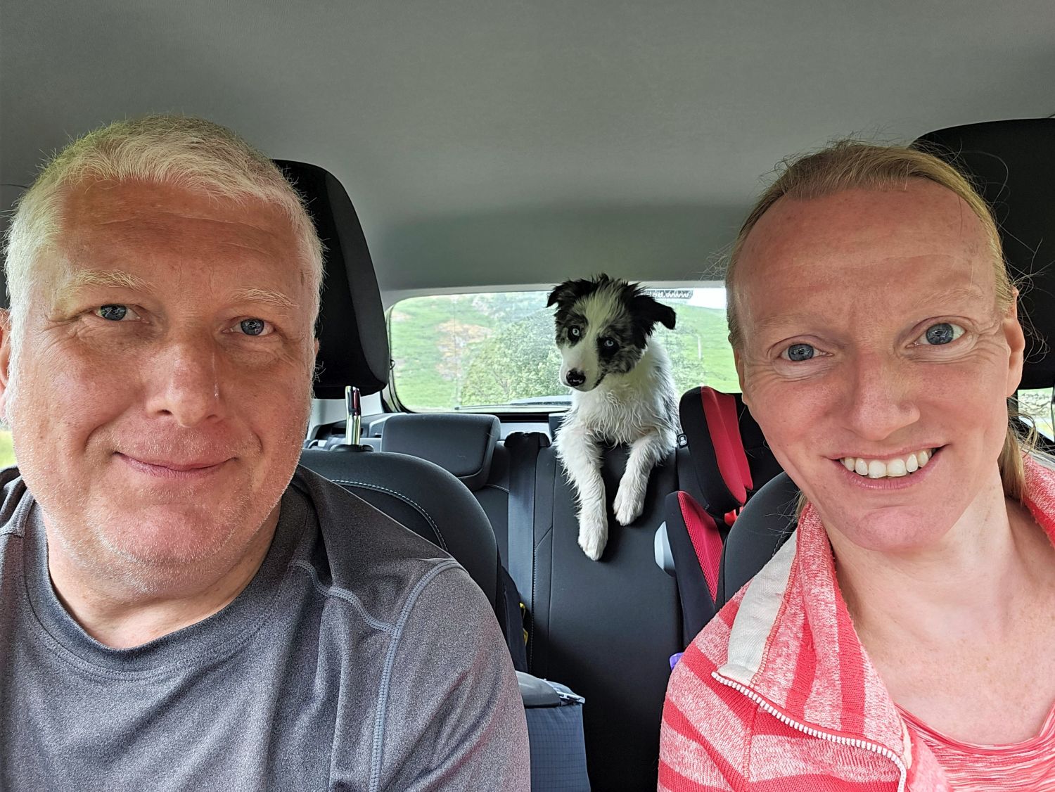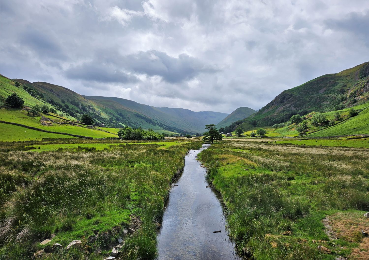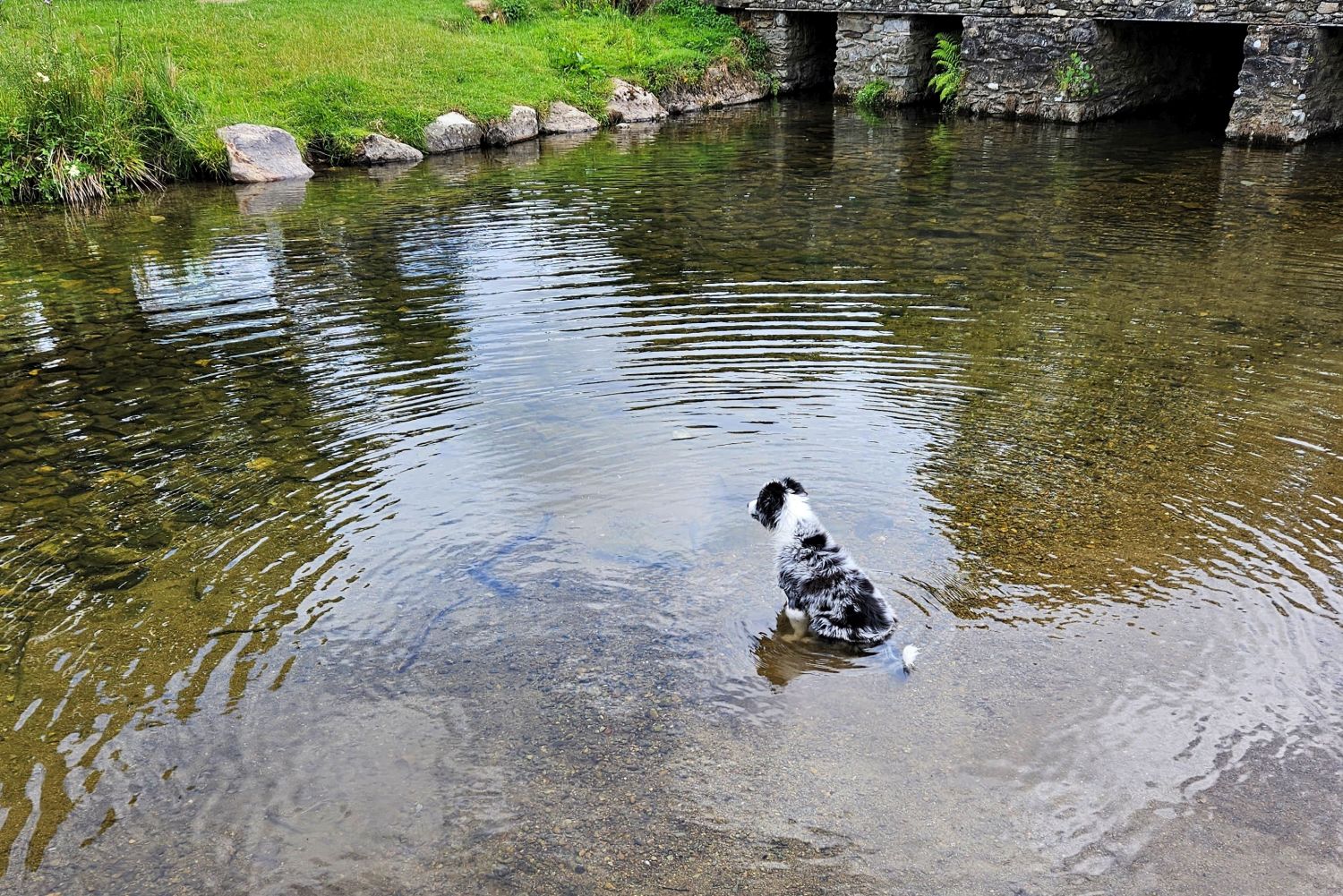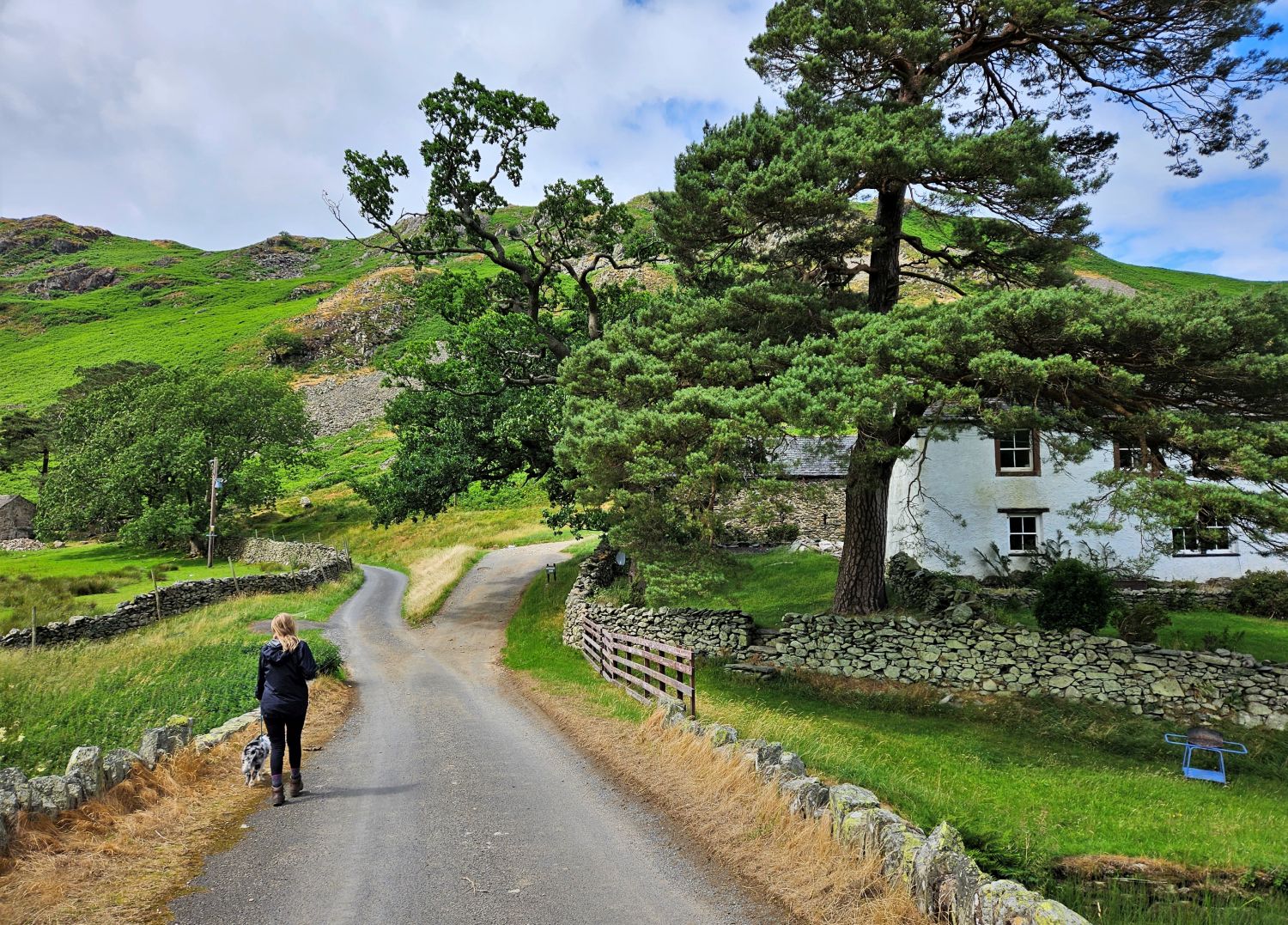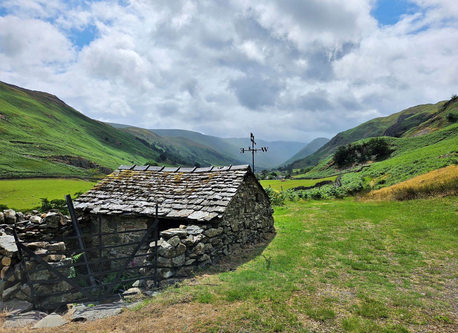 Today we headed off to Sharrow, a group of cottages on the south-east shores of Ullswater, to select some Lakeland stone for picking up the following day. There’s 70 tons available, but I’m only needing 4 tons for a garden project at home; I think 4 tons is enough for my back anyhow! While in the area we continued up the road and into Martindale to take Tika for a little walk. There he was introduced to some sheep belonging to Watercrag Farm, and an inquisitive duck in Howegrain Beck. He is so well-behaved around animals, even at this early age of 15 weeks. He’s doing well with the swimming too!