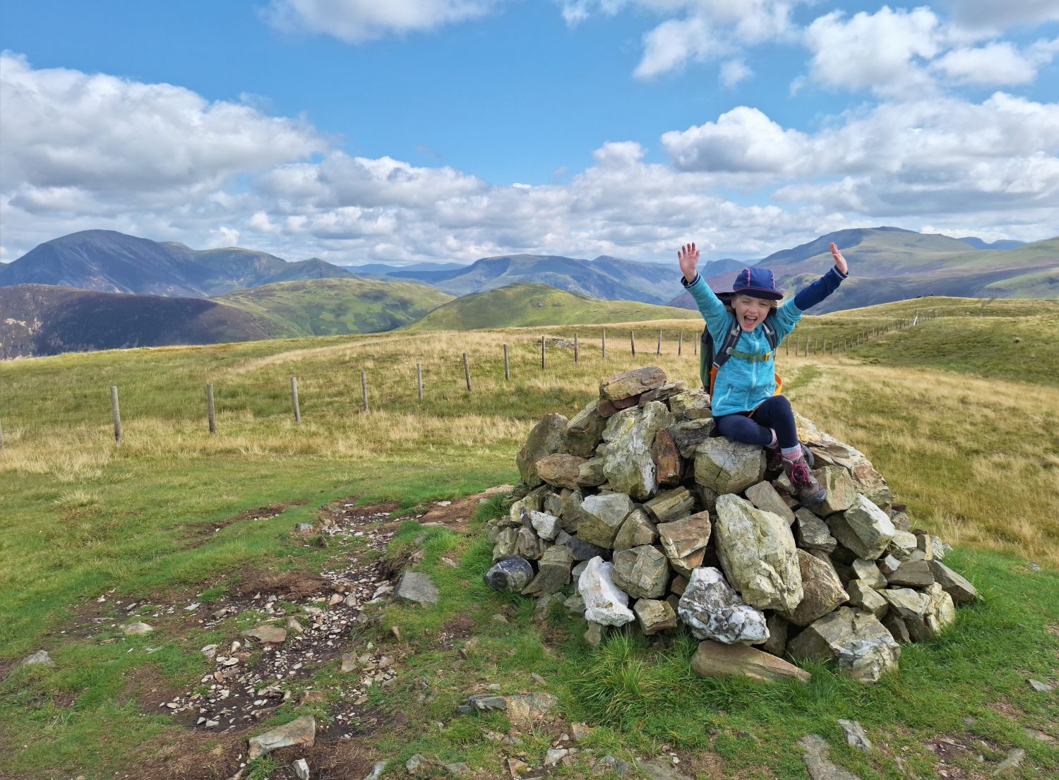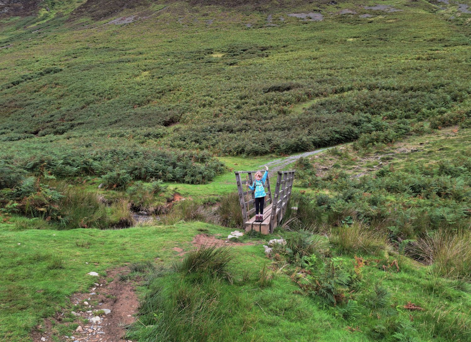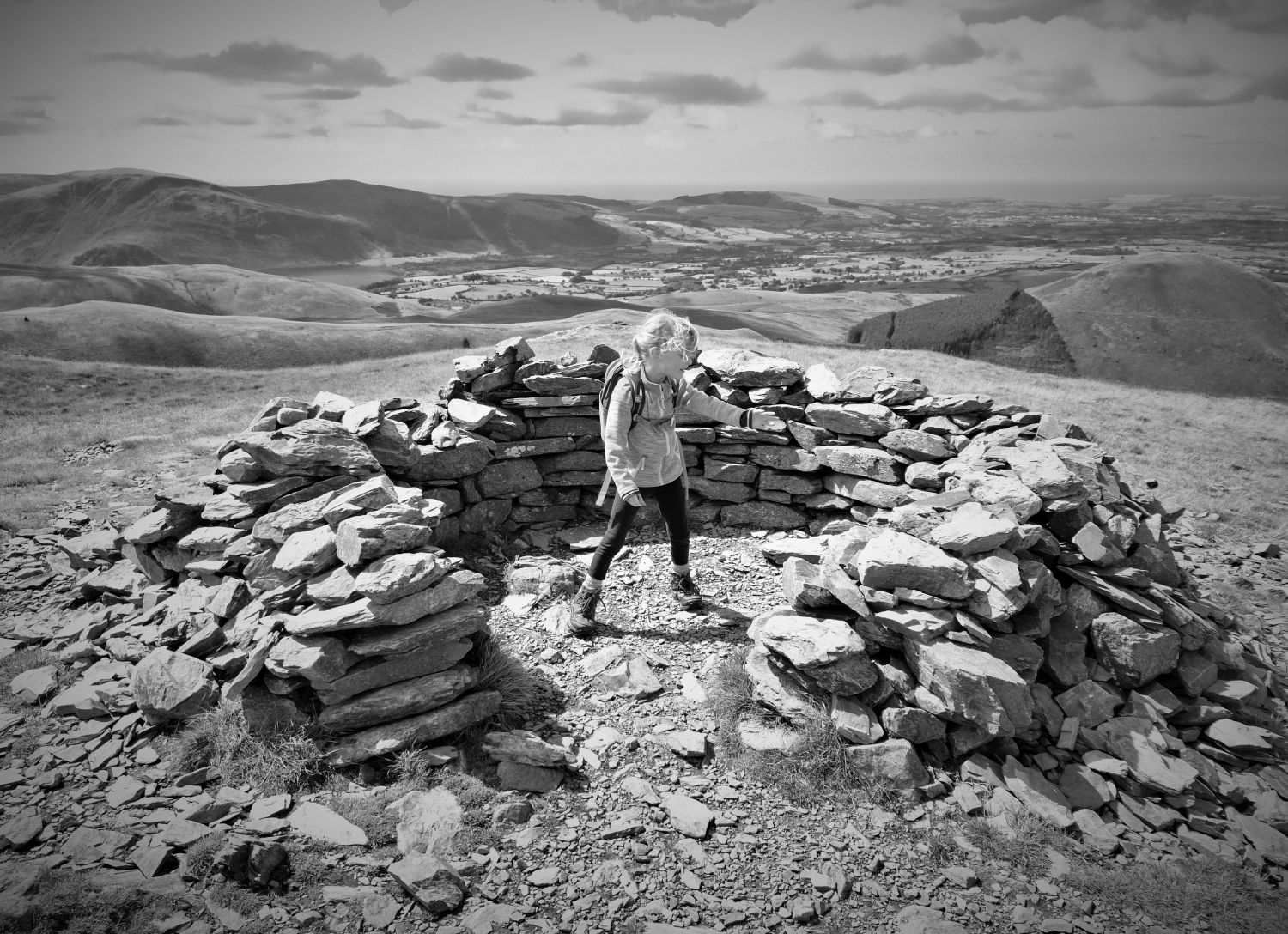 Today was to be a girly-walking day. Emily and I still had these 3 fells to tick off so we did them together. On reaching Blake Fell for our lunch stop, Emily approached the summit shelter looking very excited, shouting “this is our castle mummy!” Well done Emily, that’s 24 Wainwright’s completed. As we descended from Gavel Fell, down its north-east ridge, and back towards Maggie’s Bridge, we were met by Richard and Tika which was a lovely surprise; Tika himself peaking from behind the cairn where Richard was hiding from us.
