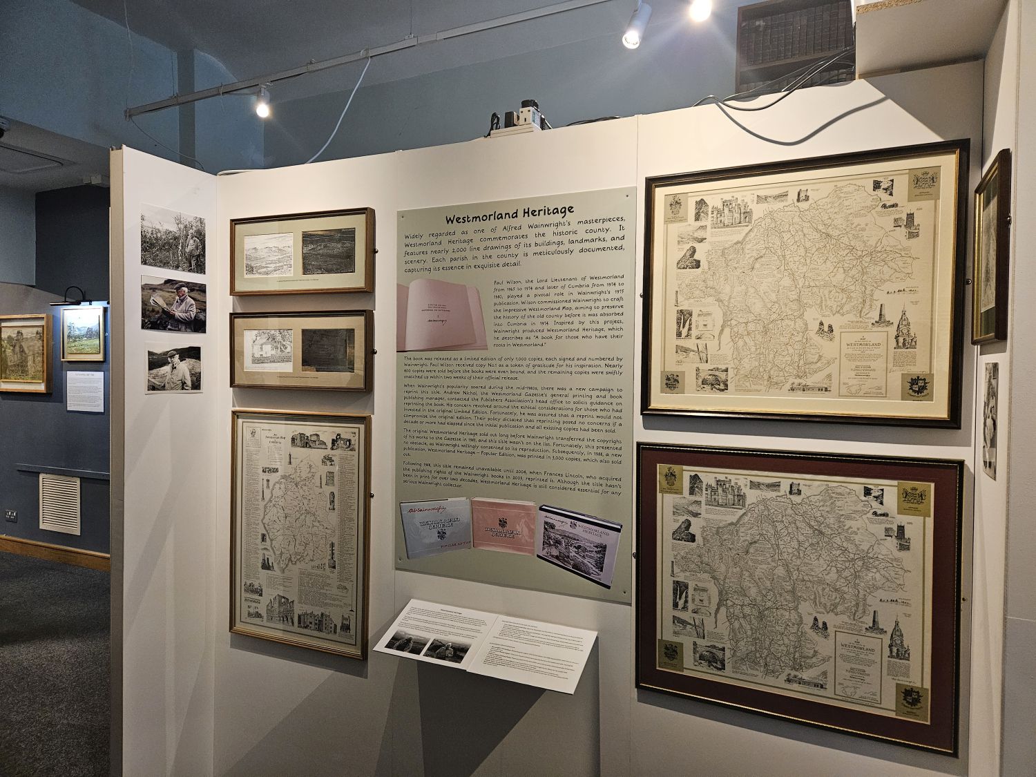 Thanks to Titus Wilson of Kendal, archivist Chris Butterfield oversees a vast collection of original Westmorland Gazette Wainwright book printing materials and other special objects collected over many years. Enhanced by generous contributions from the Cumbria Archives, Kendal Museum, and other contributors, this unique exhibition will chronicle his history across different aspects of his life, showcasing original artwork, book printing negatives, plates, gold blocking, and an original manuscript and objects owned/used by Wainwright. The exhibition will also feature materials from his various projects during his later years, providing a comprehensive look at his creative process.