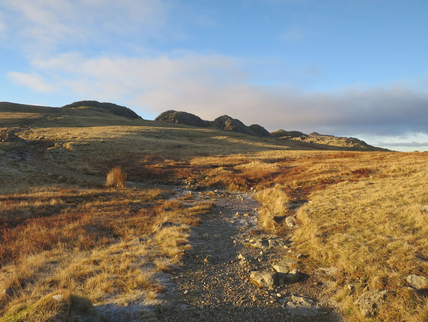 This is a post to explain that not all my walks go to plan; well, this walk and the experience was fantastic, but my plan was to photograph the whole route and the camp on Crinkle Crags for the blog. However, the weather Gods decided to lie and I woke in the morning to thick clag. This is the second attempt to photograph my favourite pitch on this ridge; on the first attempt it was the evening that was spoiled by cloud and the morning was superb for the camera, but sadly the two albums will not marry because they were taken at different times of the year. So, I will try a third time and hopefully it’ll work out fine. It doesn’t matter though, it’s the experience and the freedom to be up there amongst the crags that is the most important thing.