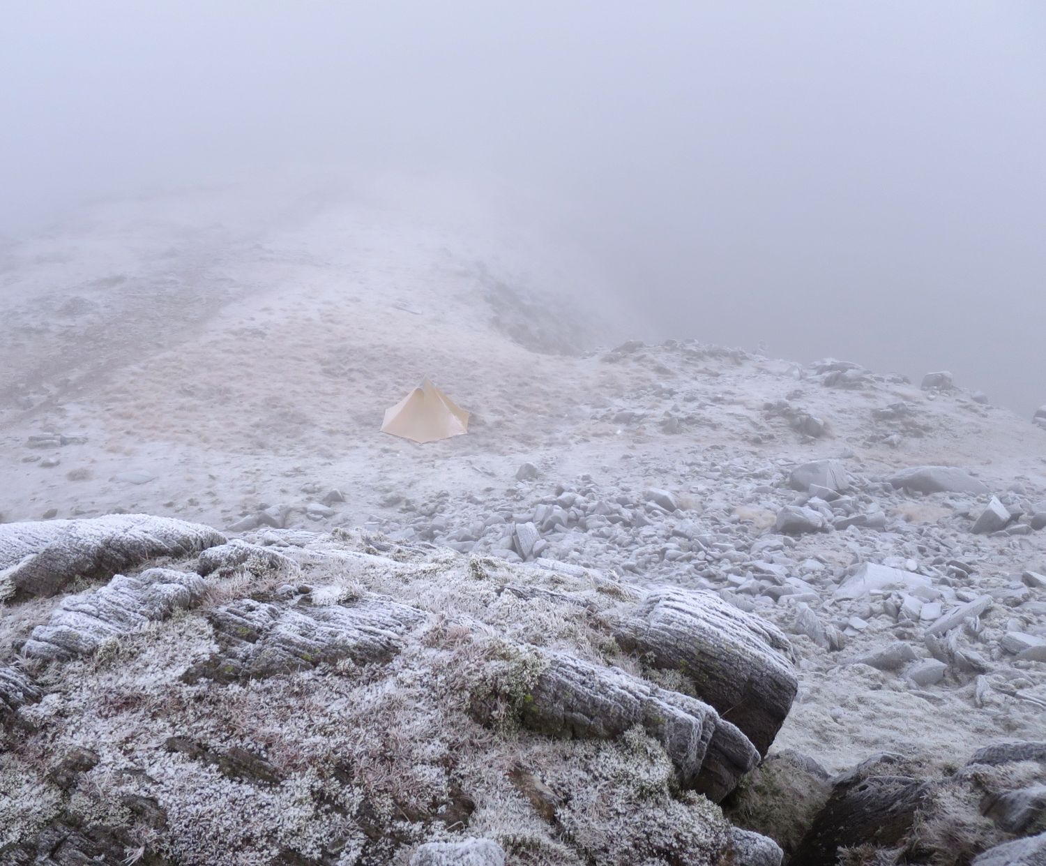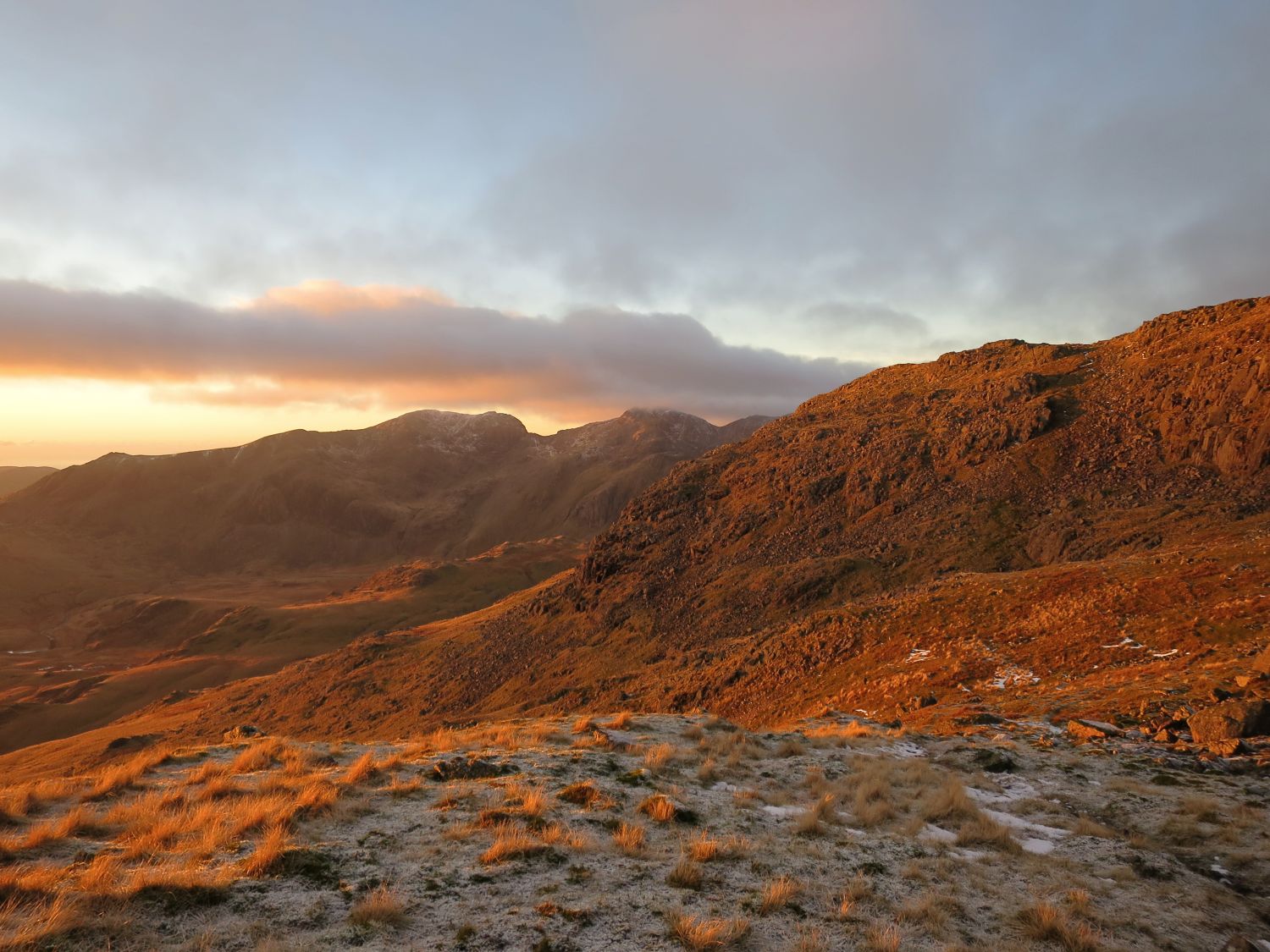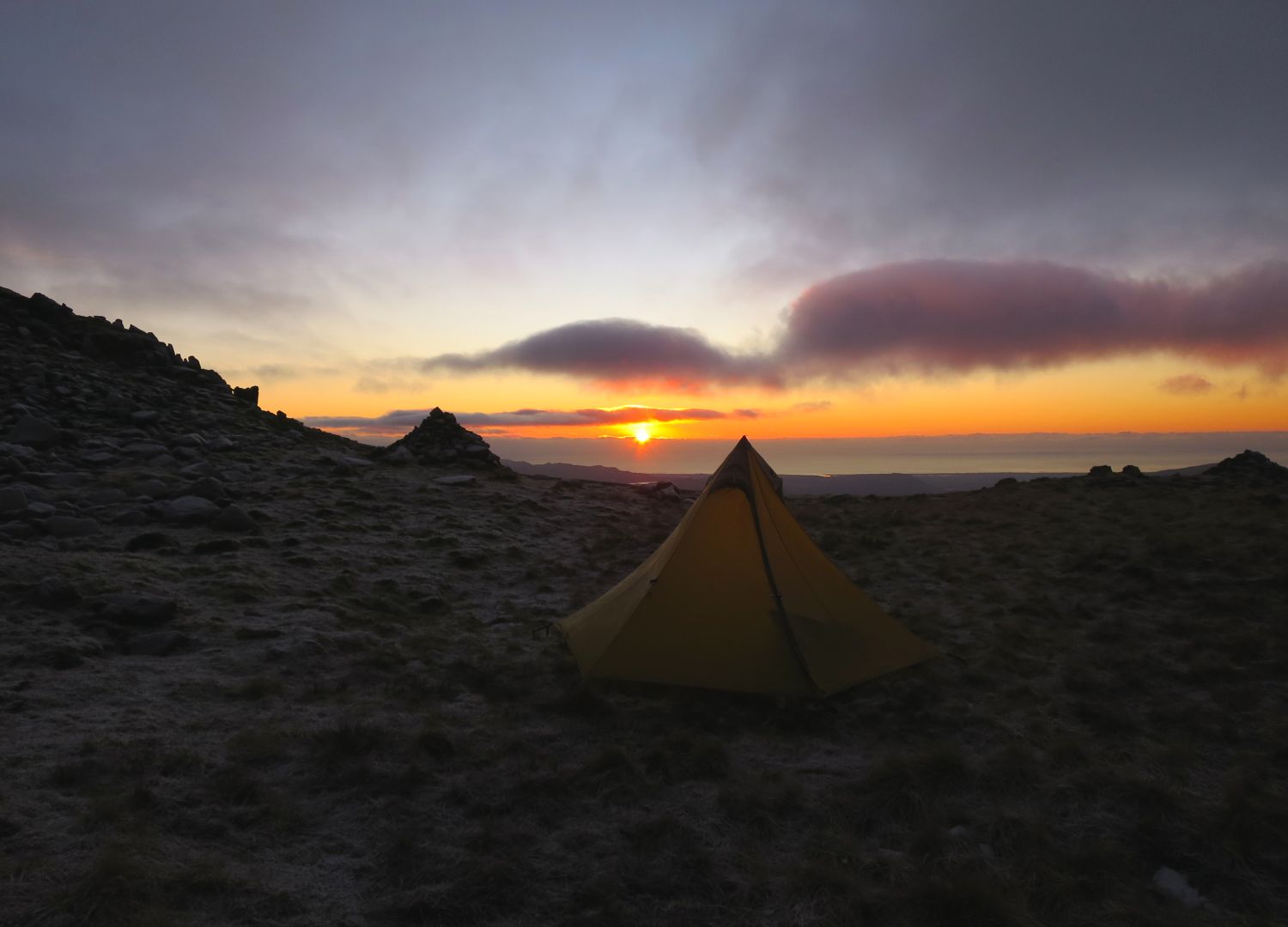 From Old Dungeon Ghyll I ascended Pike o’ Blisco via the fell runners’ route (easier) and then headed over to the first Crinkle (Flesk). I pitched just over the summit on its northern shoulder.