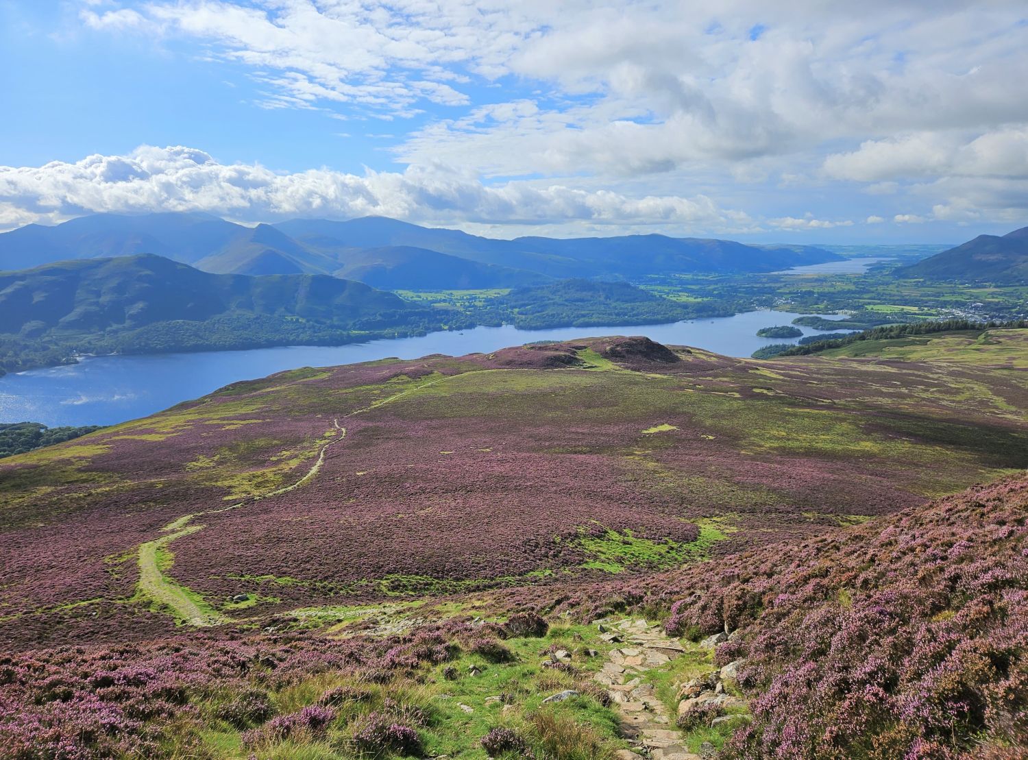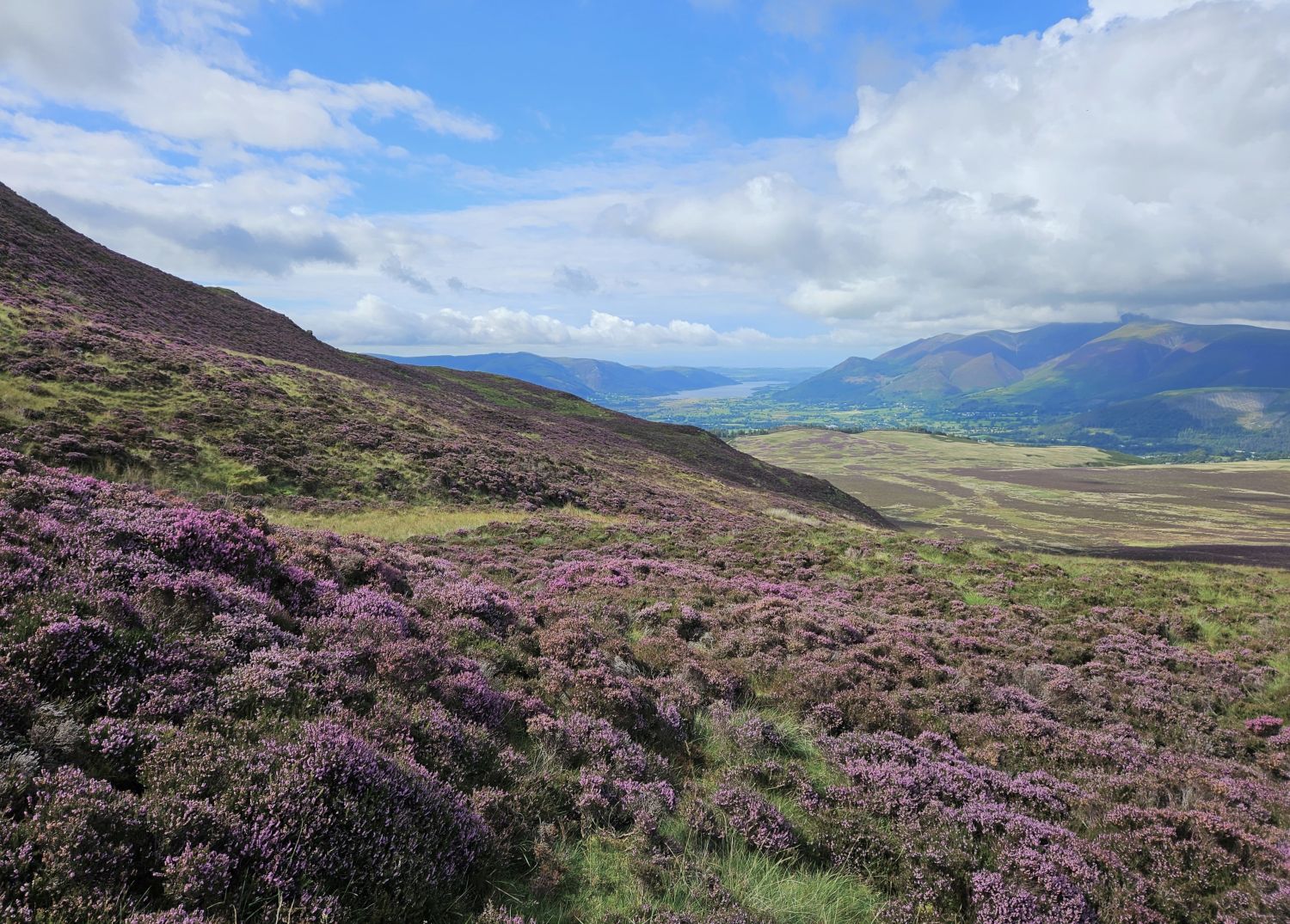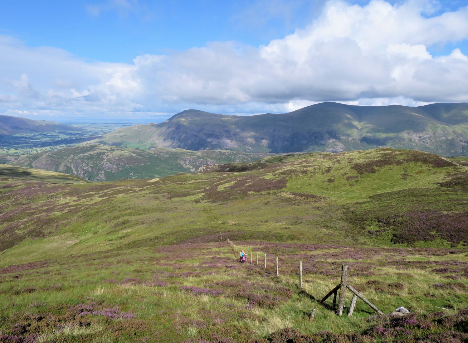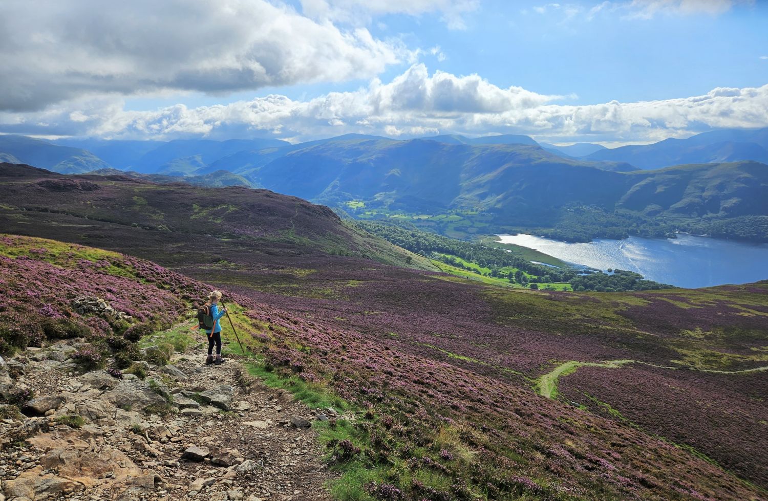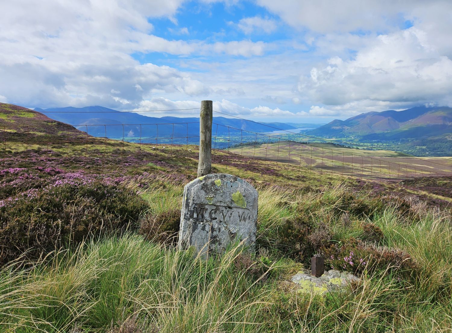 It’s that time of year to take advantage of the beautiful heather in full colour, and there’s nowhere better in Lakeland than a route over Bleaberry Fell and Walla Crag; these were two new Wainwrights for Emily, so that’s taken her tally to 26 now. After Emily had checked the Wainwright guide, we left the car in Keswick and caught the bus to Dale Bottom in the Naddle Valley. It was then a steep unorthodox route up onto Dodd Crag, and a simple task of following the fence to the summit of Bleaberry Fell. On the route I searched and photographed all the old Manchester Corporation Water Works (M.C.W.W.) boundary stones. Many have sunken over the years since the expiry date of compulsory purchases of land around Thirlmere at the end of 1886. It was then a wonderful walk to Walla Crag and then back to Keswick.