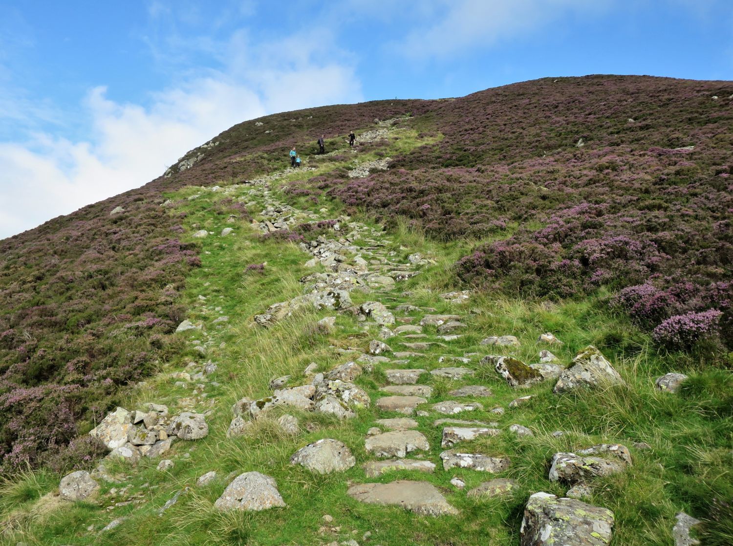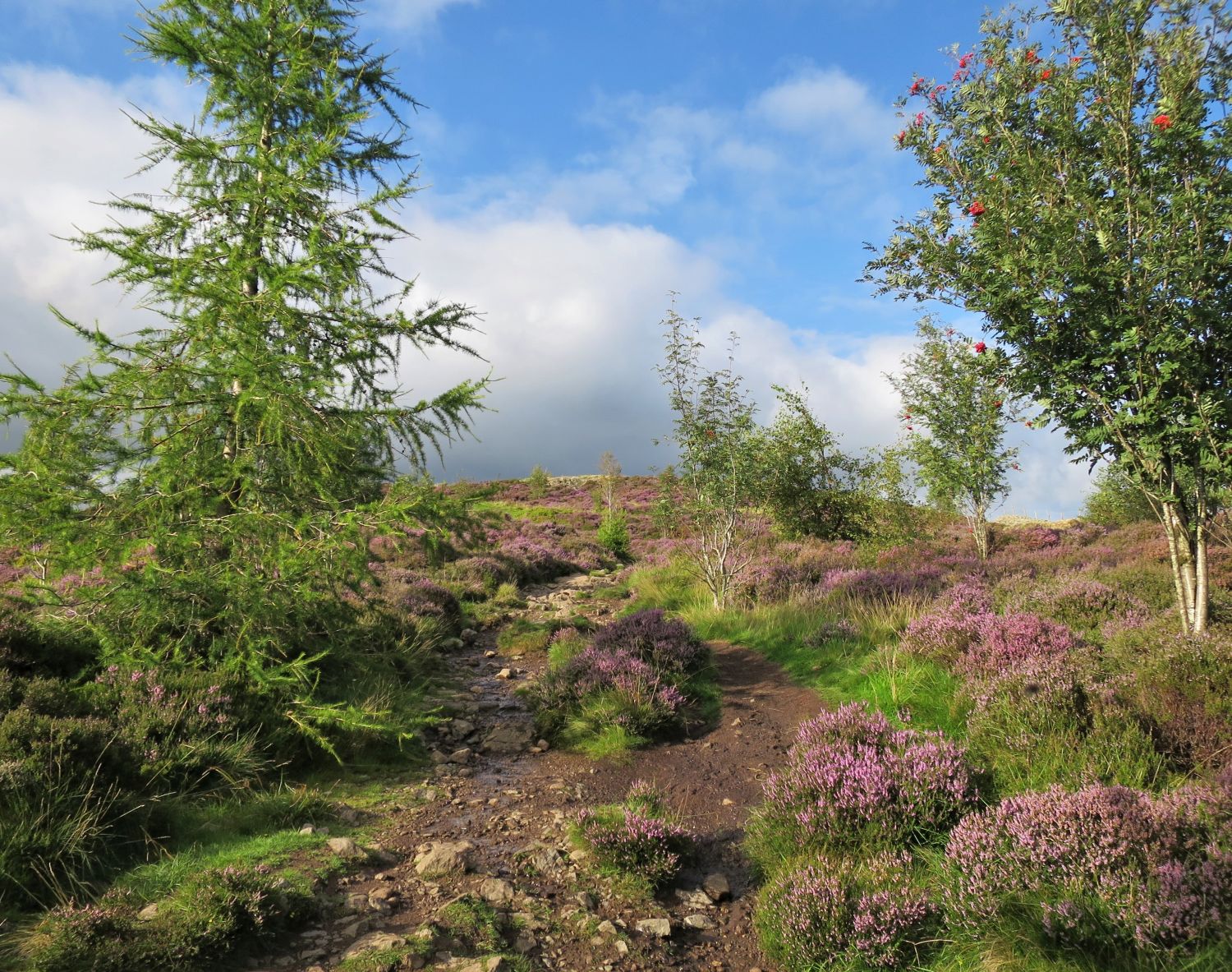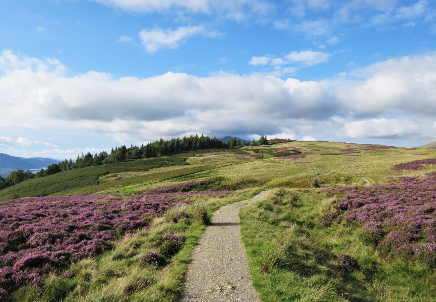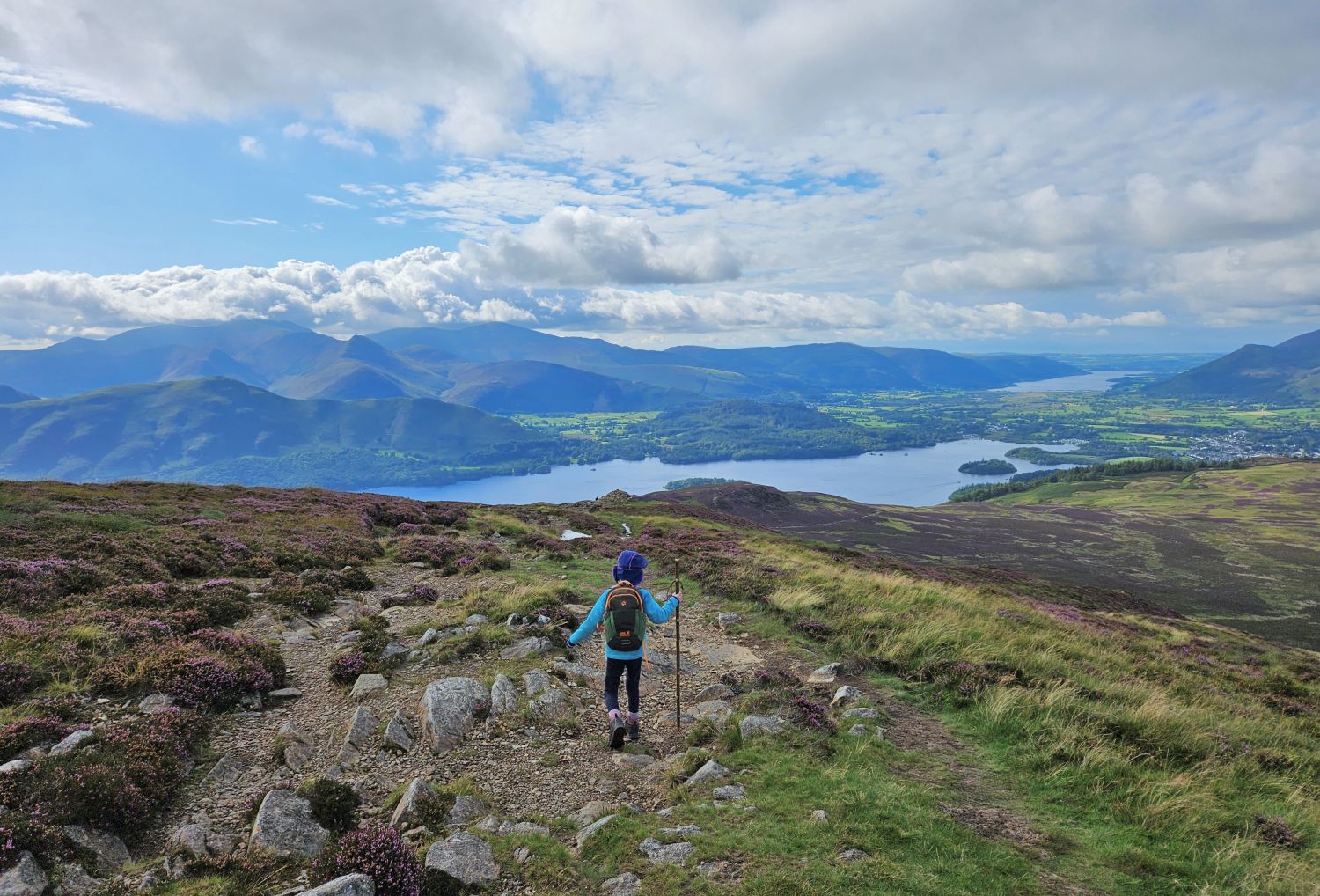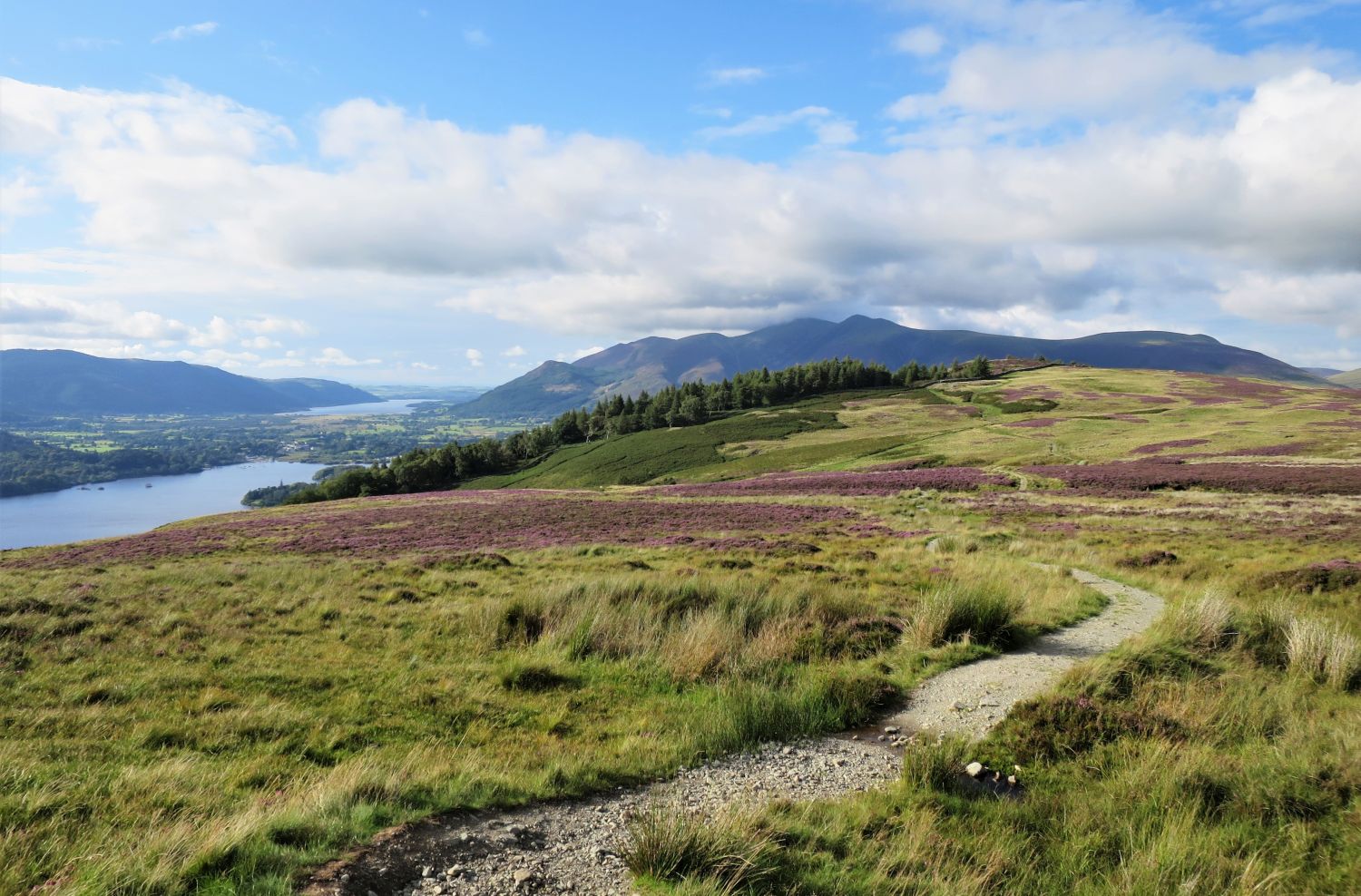 It’s that time of year to take advantage of the beautiful heather in full colour, and there’s nowhere better in Lakeland than a route over Bleaberry Fell and Walla Crag; these were two new Wainwrights for Emily, so that’s taken her tally to 26 now. After Emily had checked the Wainwright guide, we left the car in Keswick and caught the bus to Dale Bottom in the Naddle Valley. It was then a steep unorthodox route up onto Dodd Crag, and a simple task of following the fence to the summit of Bleaberry Fell. On the route I searched and photographed all the old Manchester Corporation Water Works (M.C.W.W.) boundary stones. Many have sunken over the years since the expiry date of compulsory purchases of land around Thirlmere at the end of 1886. It was then a wonderful walk to Walla Crag and then back to Keswick.