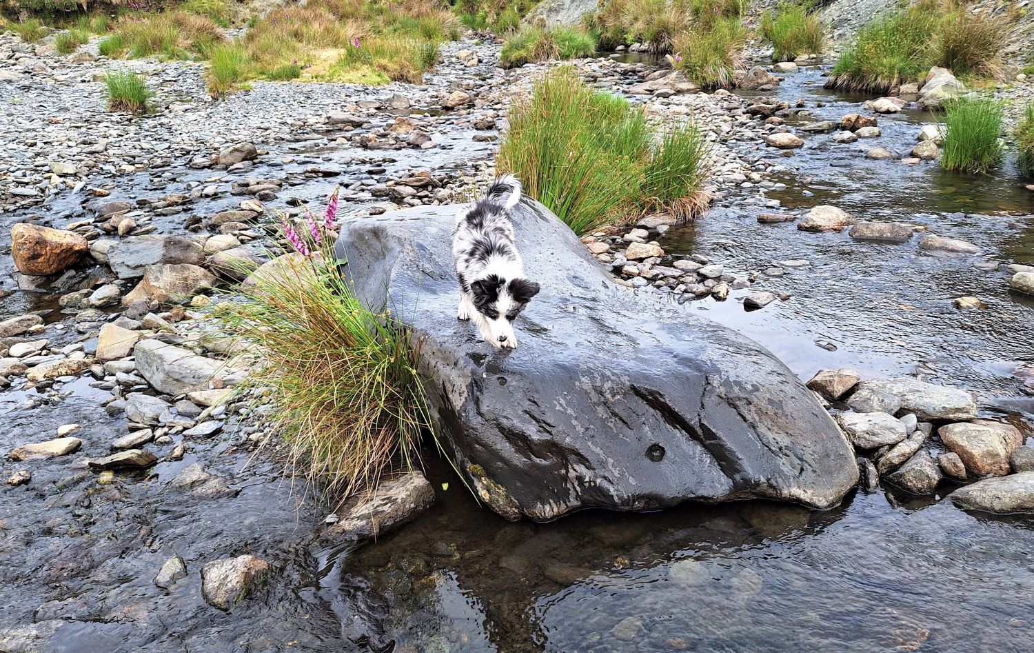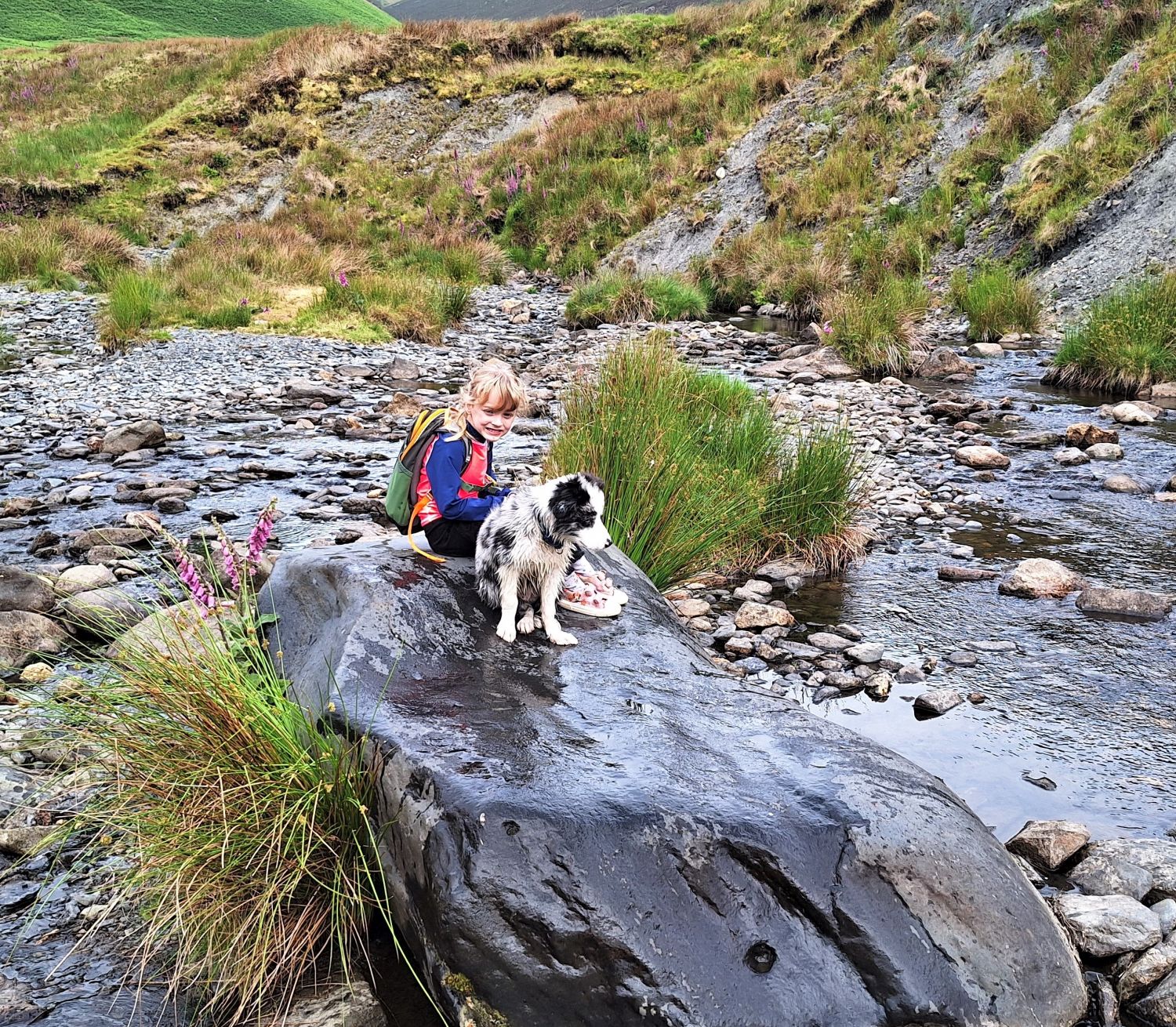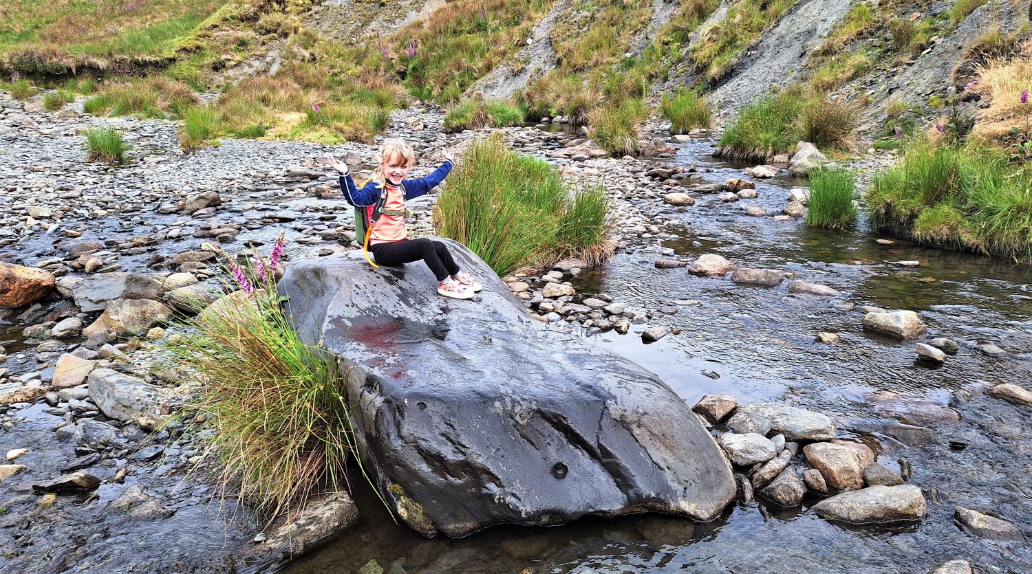 While Richard was out climbing Wetherlam with friends, I took the kids to the valley of Mungrisdale for a play in the River Glenderamackin. One came home with soggy feet, and the other with soggy paws, so they must have enjoyed themselves. Emily was overjoyed to find a mermaid rock to bask in the summer sun, and a heart-shaped stone as a memento of the day. Tika meanwhile, is loving these walks to the rivers and becks of Lakeland.