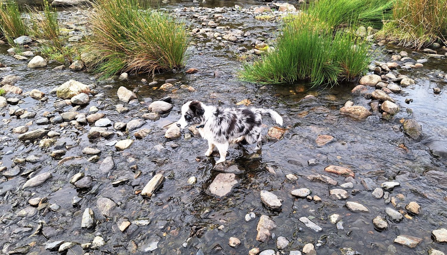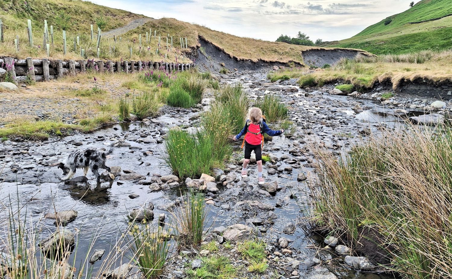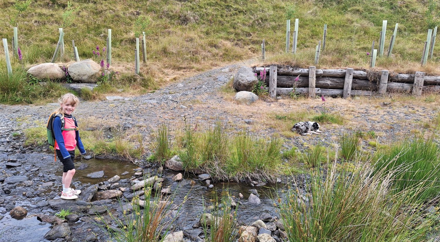 While Richard was out climbing Wetherlam with friends, I took the kids to the valley of Mungrisdale for a play in the River Glenderamackin. One came home with soggy feet, and the other with soggy paws, so they must have enjoyed themselves. Emily was overjoyed to find a mermaid rock to bask in the summer sun, and a heart-shaped stone as a memento of the day. Tika meanwhile, is loving these walks to the rivers and becks of Lakeland.