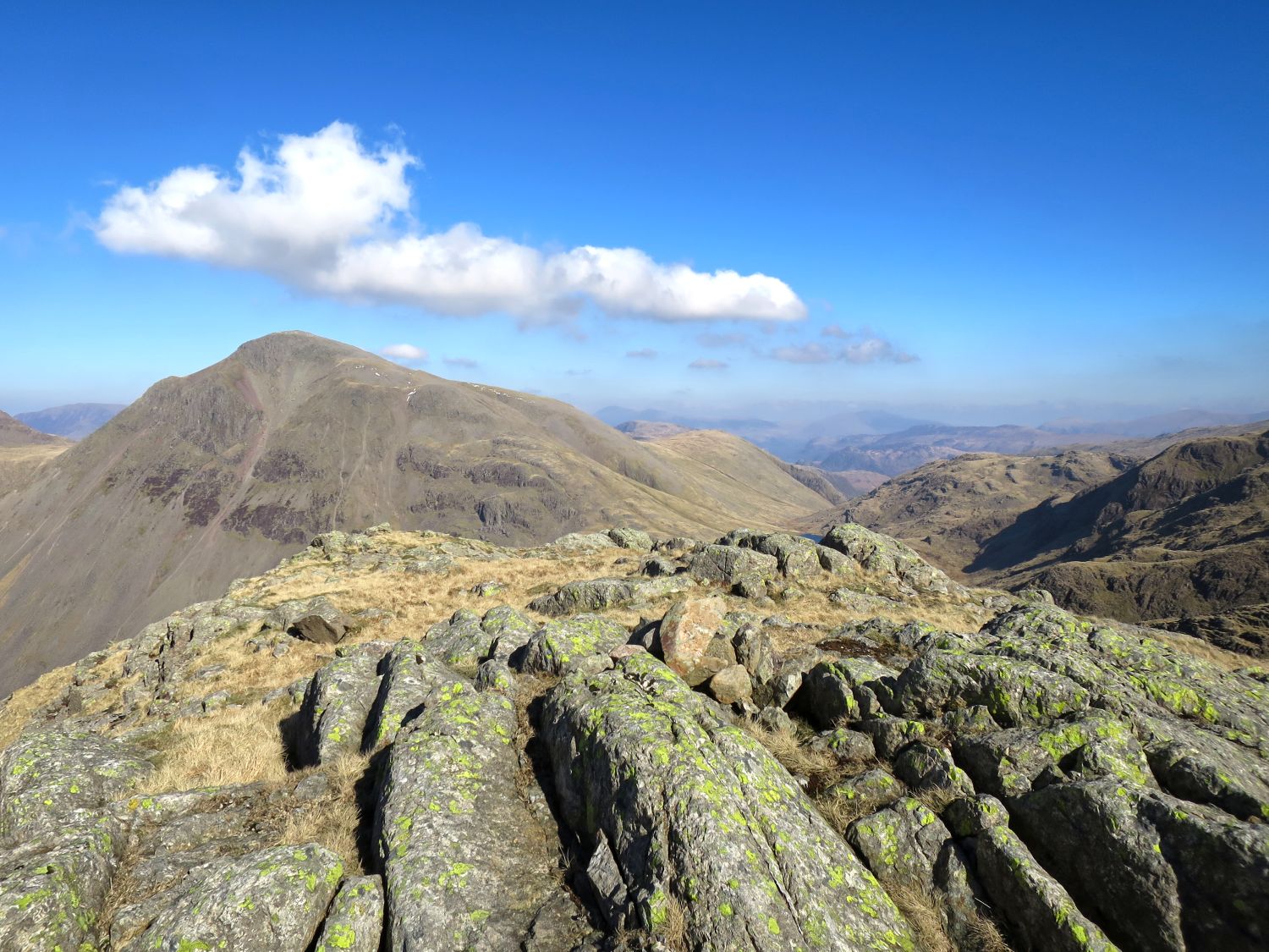 A fine day out with Dave Walsh of Masarnen Ramblers visiting the tops of Criscliffe Knotts, Middleboot Knotts, Round How and then finishing off with an ascent of Great End via Greta Gill. It was a tad hazy in the distance but we still managed some good shots of the neighbouring fells and crags. In all it was a cracking day of exploring lesser known routes in this area.