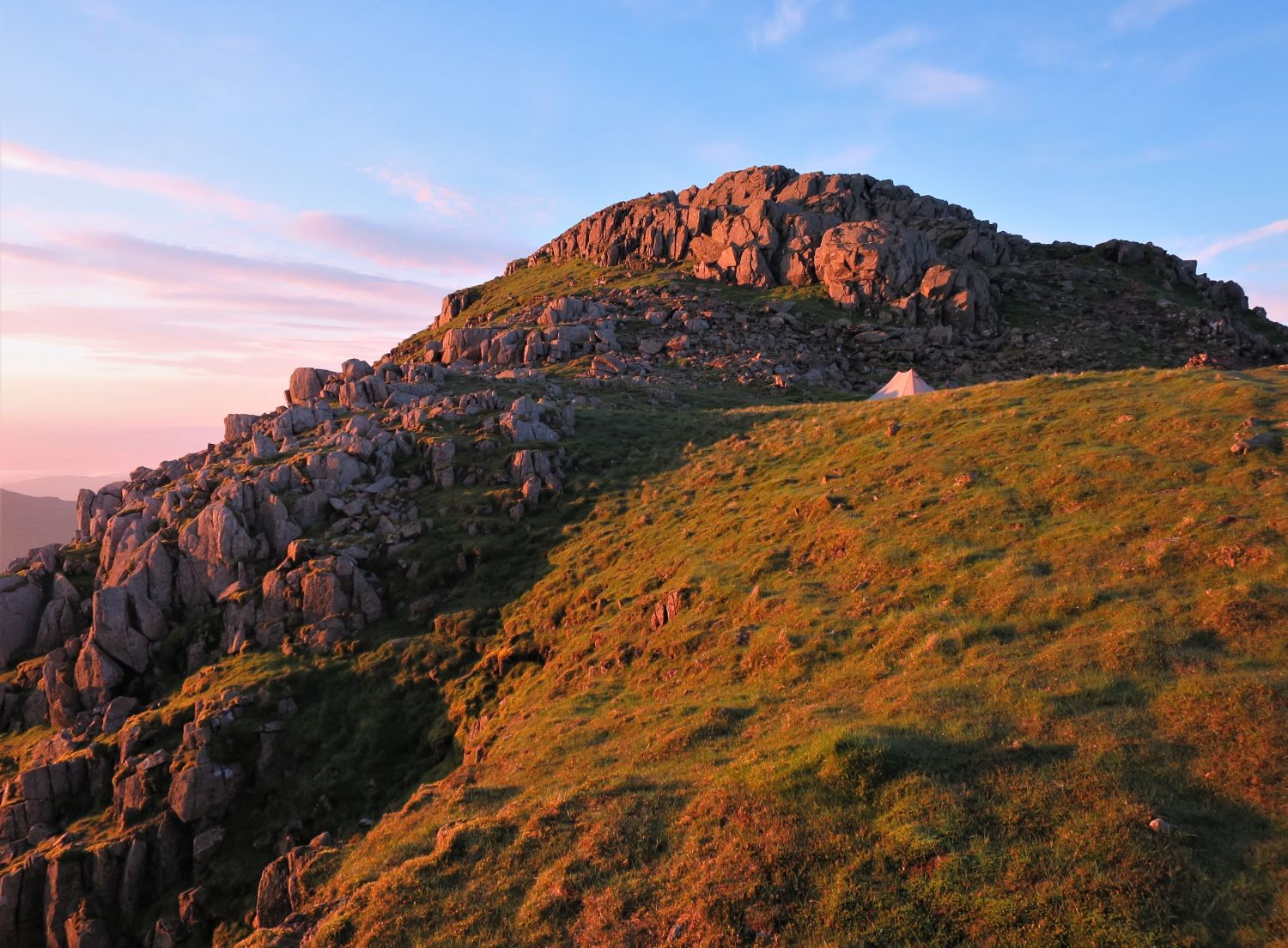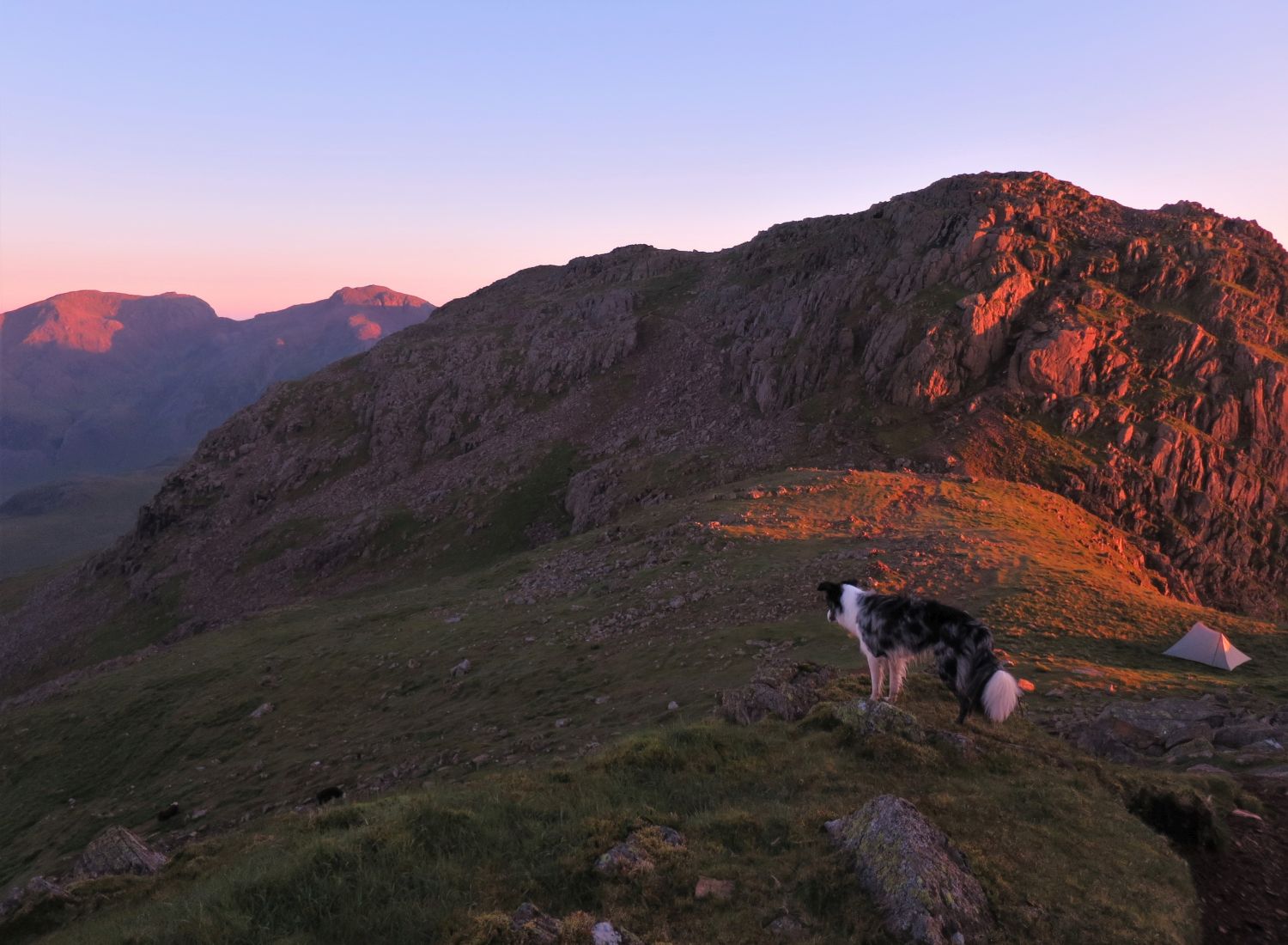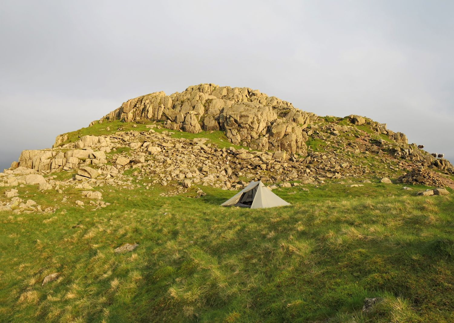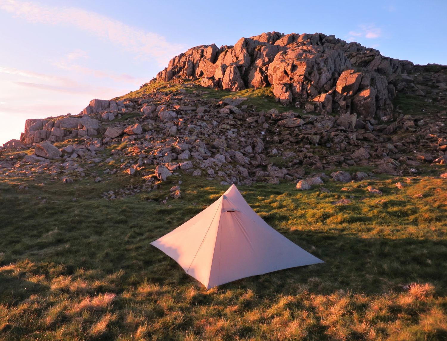 Some of my favourite photos from my wild camp on Crinkle Crags, which was the first night out for the Durston X Mid 2. The weather forecast for the evening was easterly winds and clearing, but on arrival to the first top from the north, Gunson Knot, I found myself in thick clag and the wind had dropped to nothing. It was a very moody and creepy atmosphere, as I negotiated the rocky knolls and traverses. Thankfully I know these five summits very well, and I knew where to take the short cuts and where to find water. I found a lovely spot on the ascent of the last Crinkle, previously known as “Flesk”, and pitched above the col and straight opposite the ‘Bad Step’. It was a quick pitch and it wasn’t long until cooking commenced. There was a brief moment of sun peeking through above the Scafells that lit up my location, so I quickly jumped out of my abode to take a photo of the tent and the summit of Flesk. What followed in the morning was simply spectacular, but I’ll let the photos show my reward for all the effort.