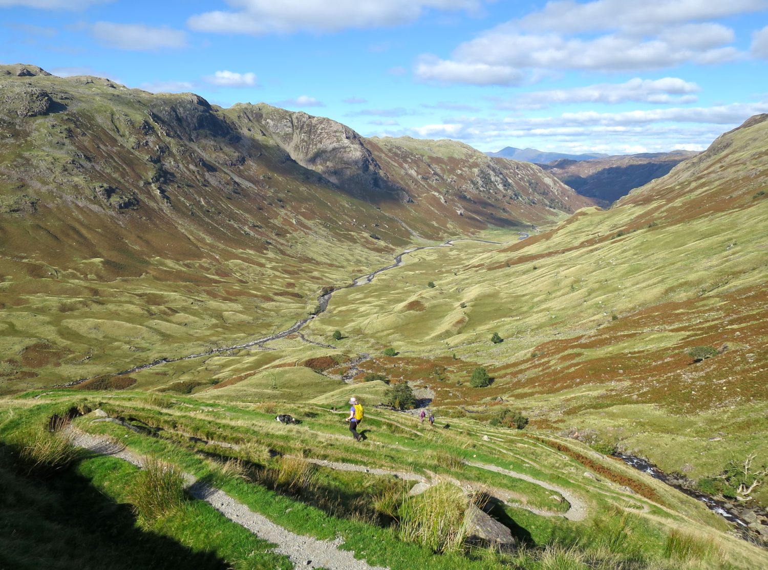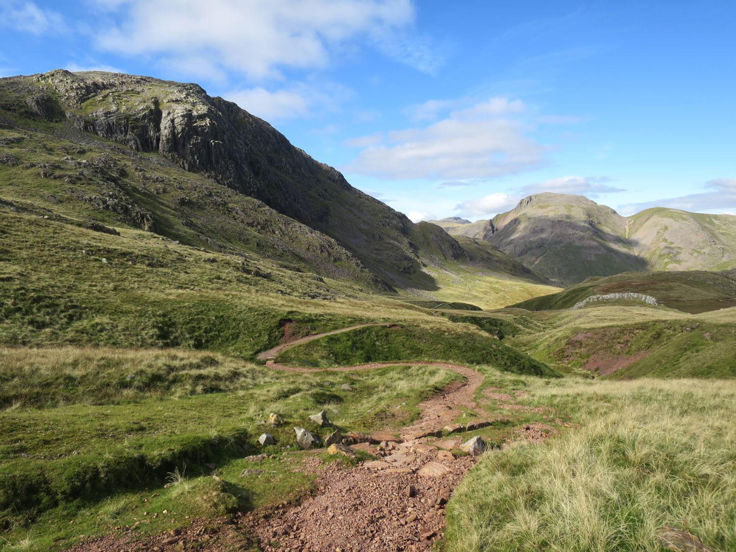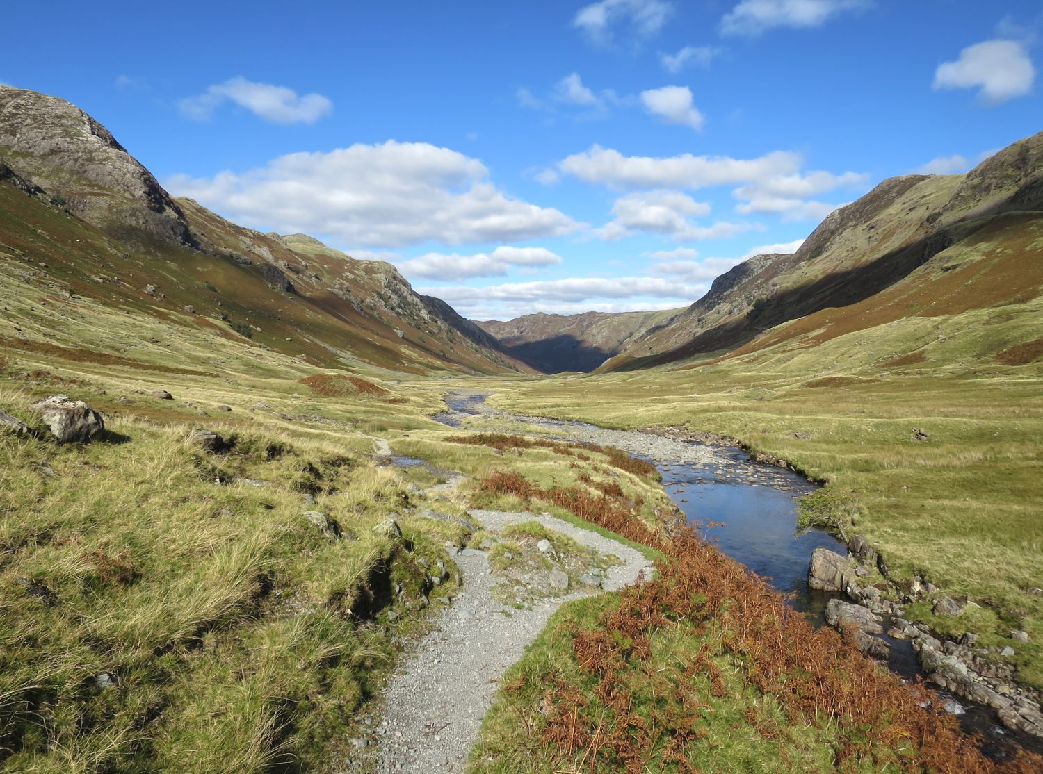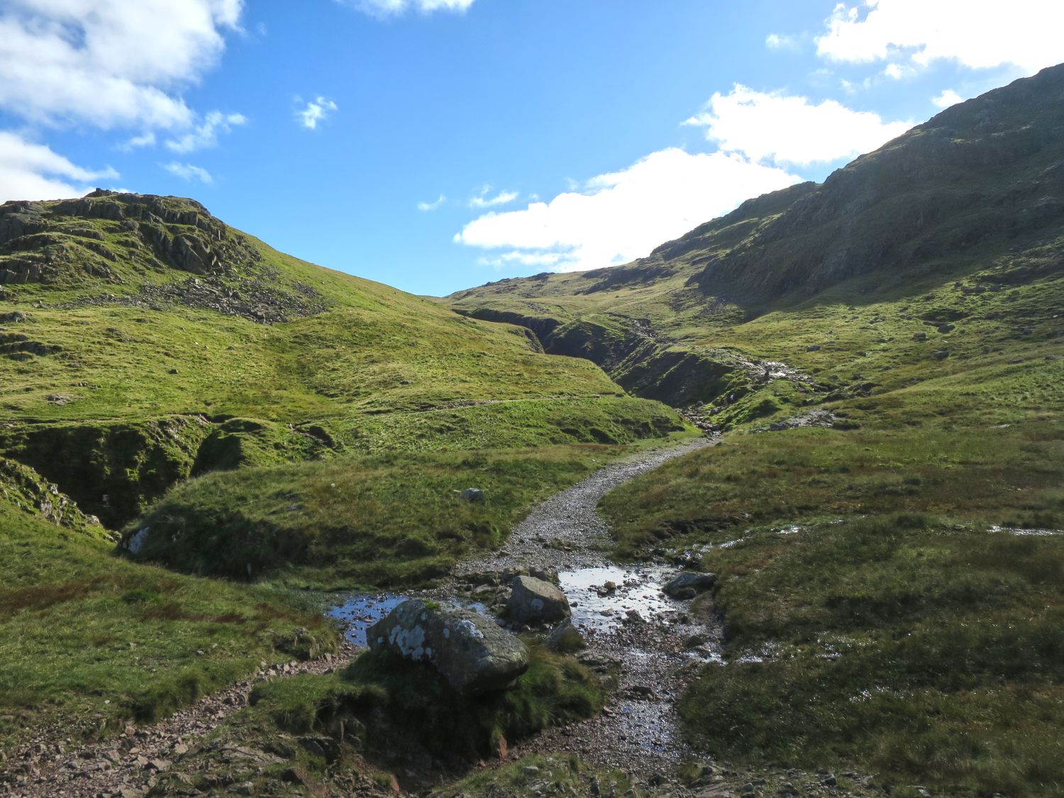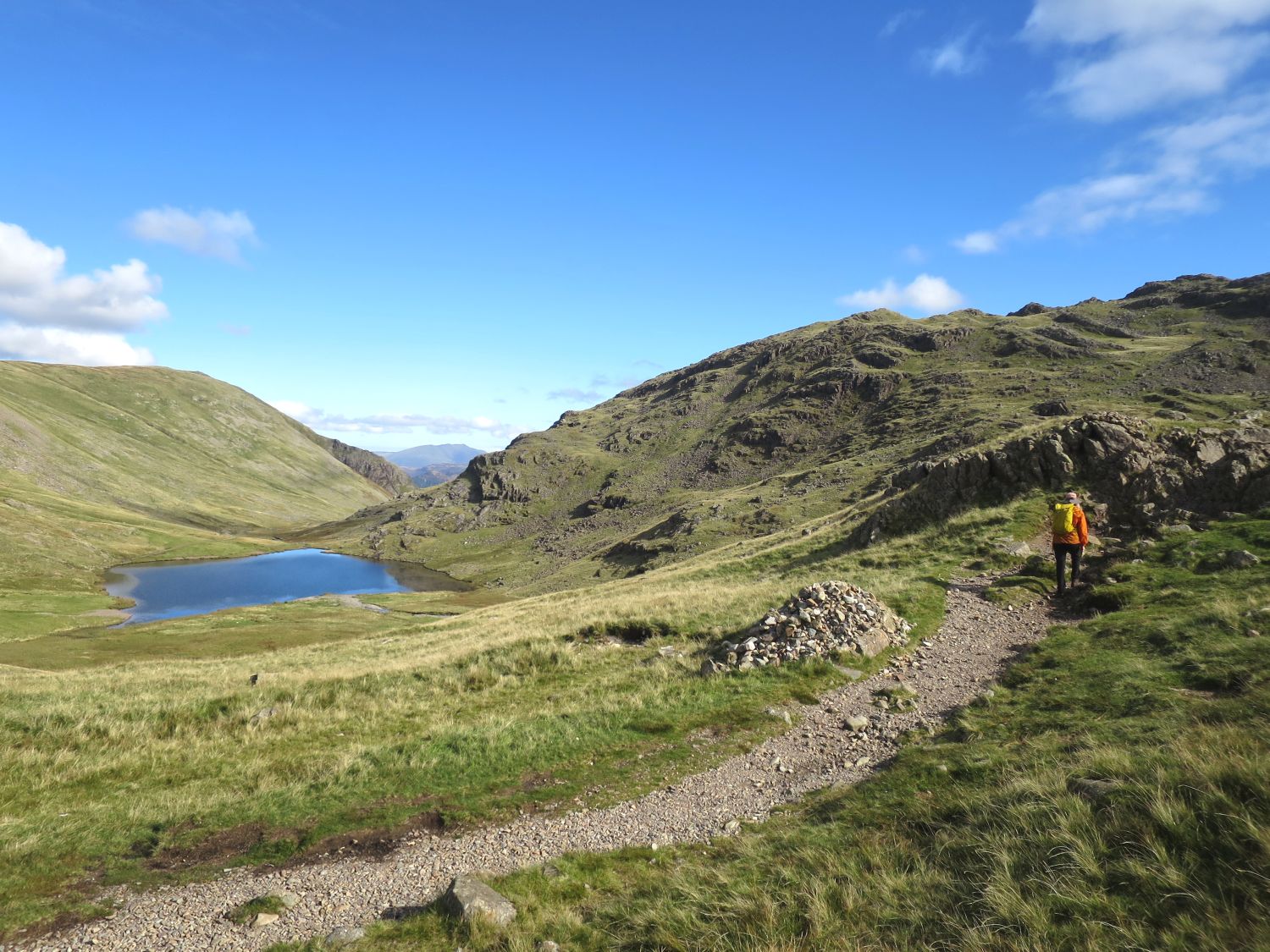 Here are a few photos from Today’s walk: up to Sty Head from Seathwaite, along the Esk Hause route via Sprinkling Tarn and Angle Tarn, and then down through Langstrath from Stake Pass. The objective was to photograph part of Day 2 on the Lakeland Way. This section, along with part of Day 5 between Keswick and Dockray, is among the most difficult to capture because they are the only stretches of the walk that head east towards the sun. Both have proved very problematic, and each will require three separate visits to secure the right images for the Lakeland Way website.