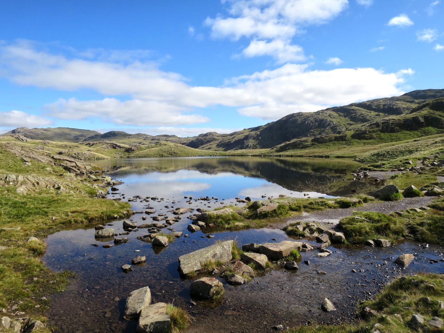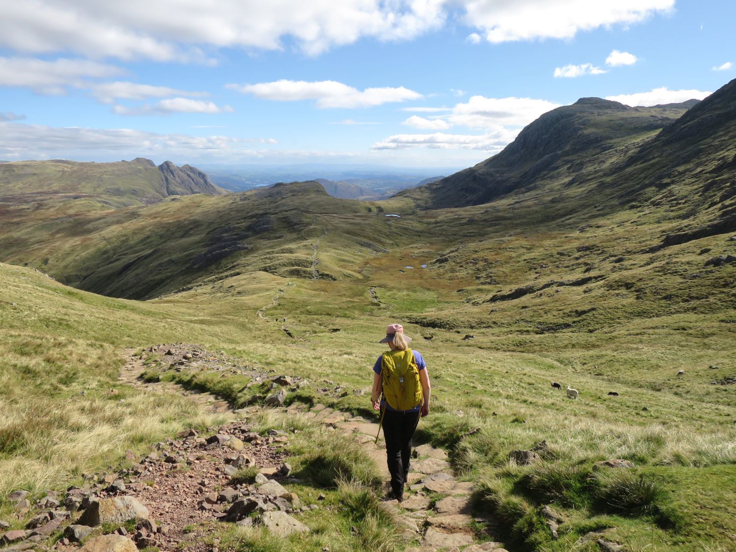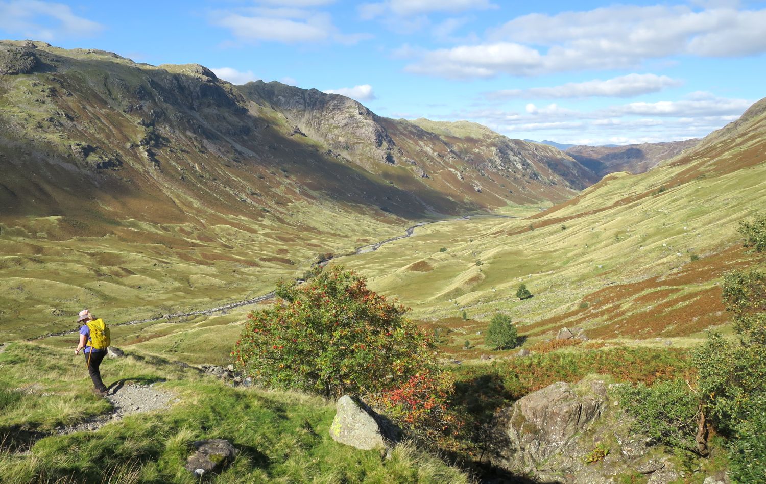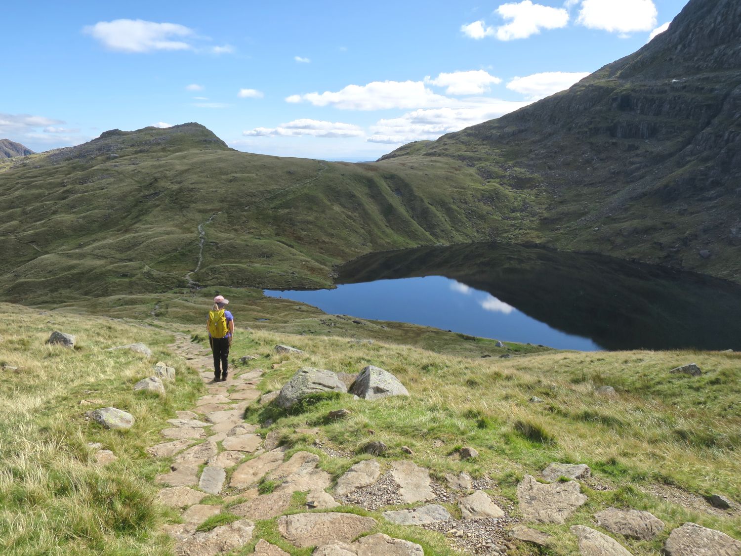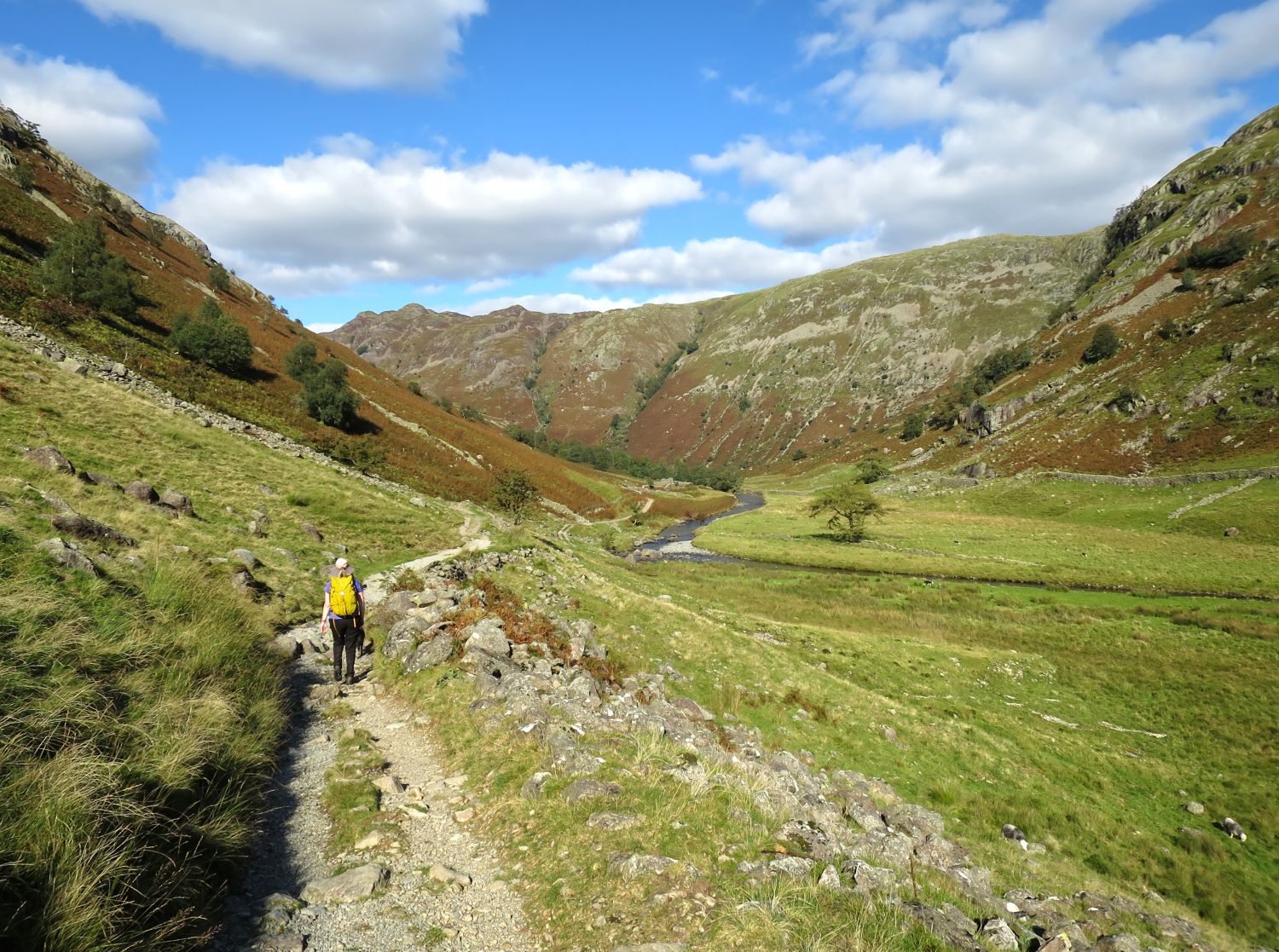 Here are a few photos from Today’s walk: up to Sty Head from Seathwaite, along the Esk Hause route via Sprinkling Tarn and Angle Tarn, and then down through Langstrath from Stake Pass. The objective was to photograph part of Day 2 on the Lakeland Way. This section, along with part of Day 5 between Keswick and Dockray, is among the most difficult to capture because they are the only stretches of the walk that head east towards the sun. Both have proved very problematic, and each will require three separate visits to secure the right images for the Lakeland Way website.