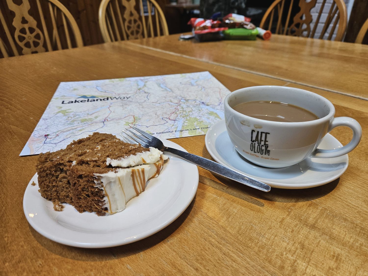 The hard work continues. Today it was a mooch around Borrowdale and to introduce ourselves and the Lakeland Way to Seatoller House and YHA Borrowdale, with a pitstop at Glaramara Hotel. To be honest it was tough going getting through all the cake and coffee, but we escaped the Jaws of Borrowdale and returned safely back to Keswick for lunch.