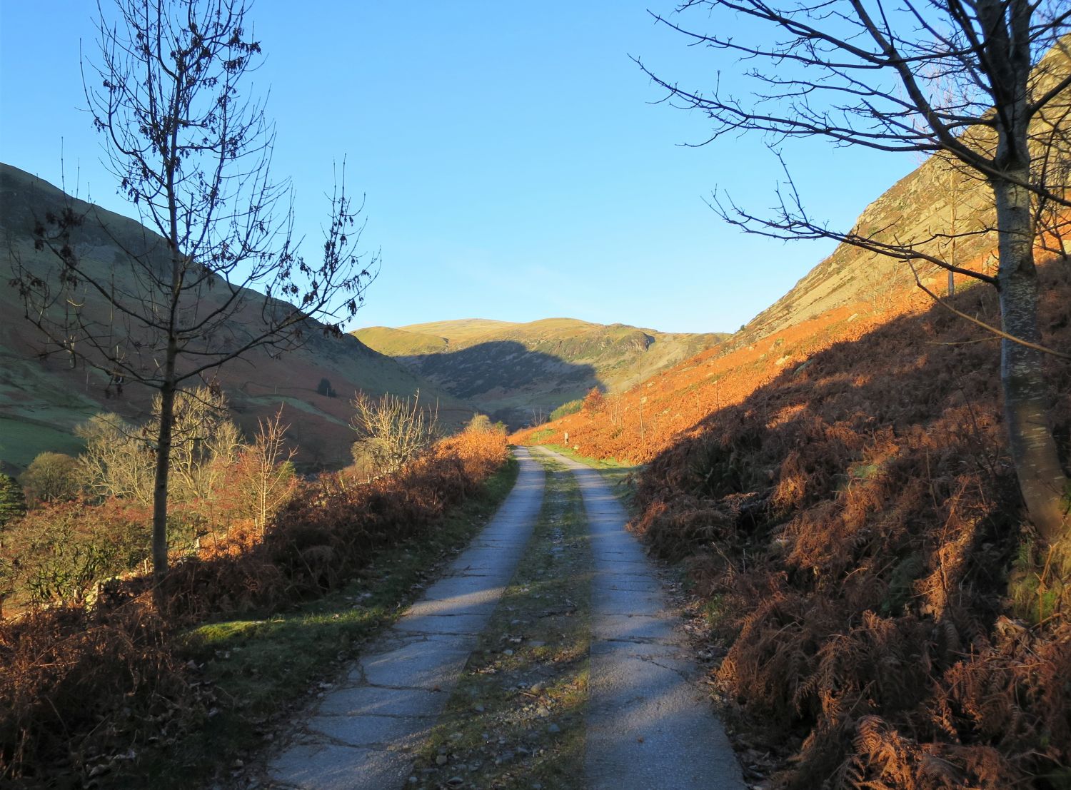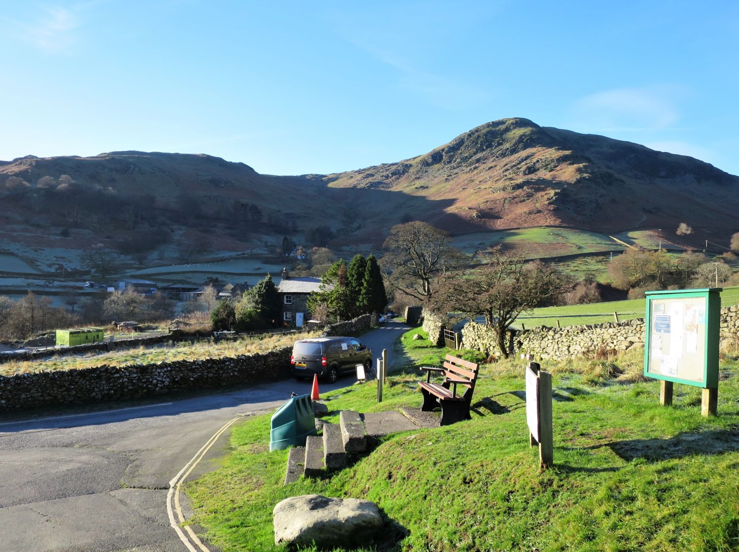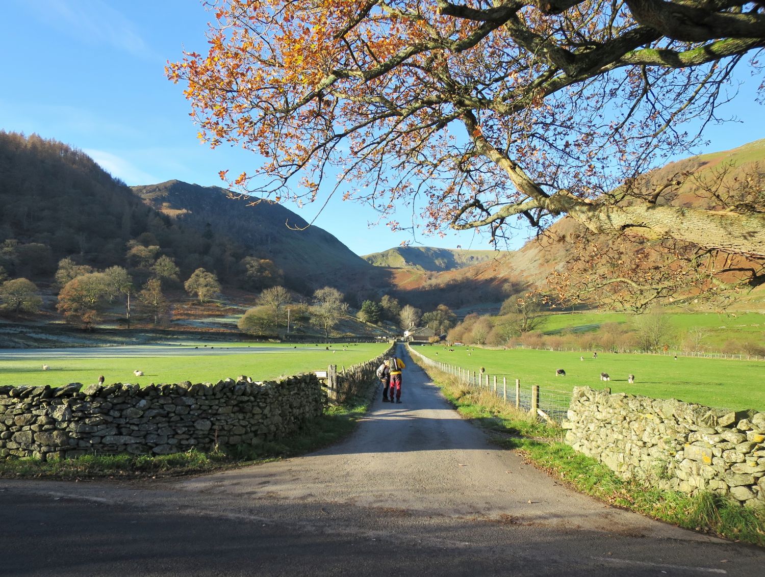 I visited the valley of Glenridding this morning to take some photos for part of Day 6 – Dockray to Patterdale of the Lakeland Way. We had walked the whole route only two weeks ago during a nice cold snap with clear skies, but sadly towards the end as we dropped into the valley we ran out of light; the might of Birkhouse Moor was the culprit! I was hoping today to take the final photos between Greenside and Patterdale, but it soon became clear that the valley at this time of the year will stay in shade for most of the day. It was very disappointing because on our previous visit, between Dockray and Greenside, we had taken some cracking autumn photos. So the decision has been made to take the photos for Day 6 towards the end of spring next year, when the leaves have just sprung into action and the sun is higher. Things don’t always go to plan, and it seems like a good mountain day wasted, but it was nice to be out on a lovely day like this.
