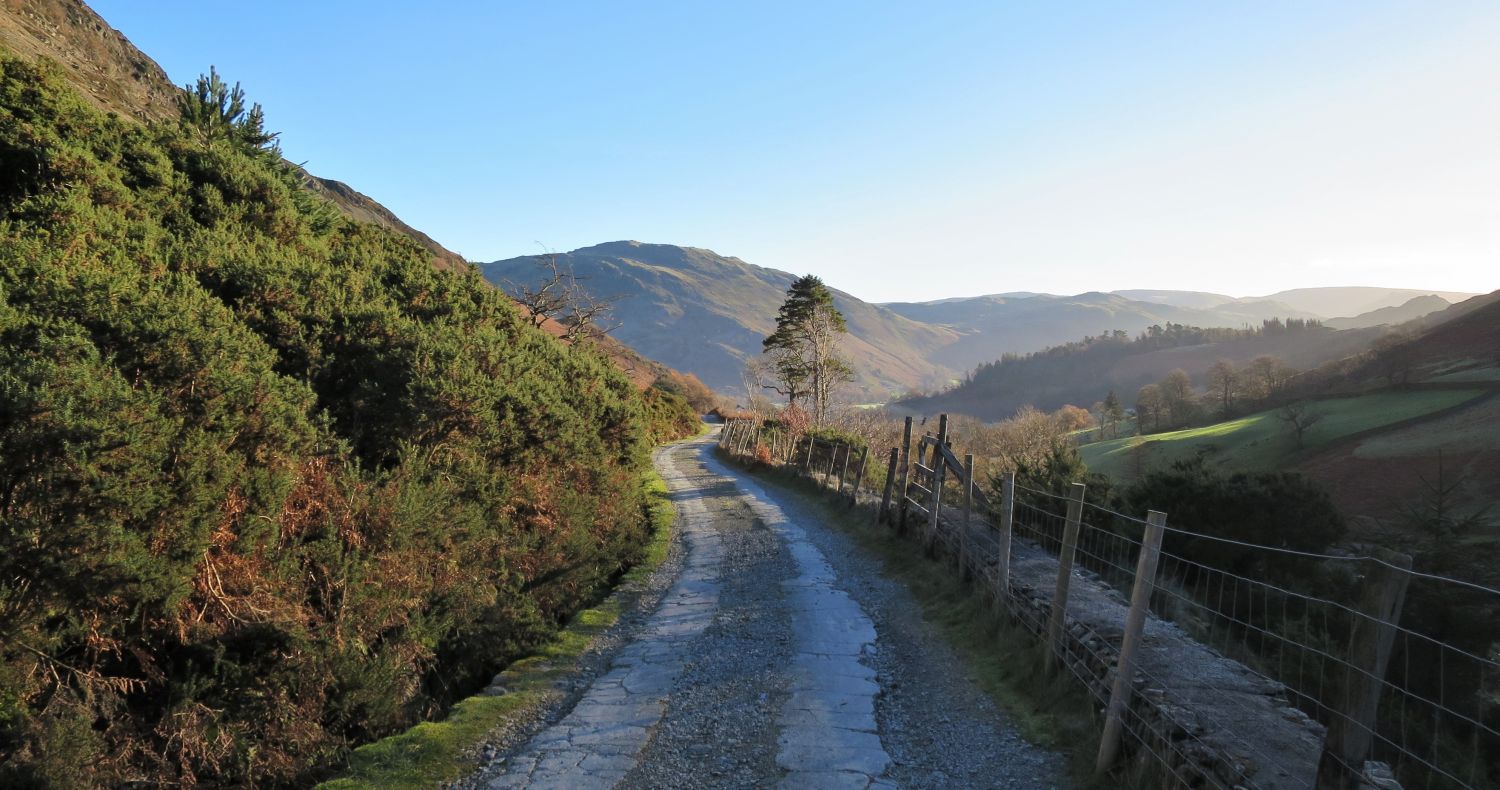 I visited the valley of Glenridding this morning to take some photos for part of Day 6 – Dockray to Patterdale of the Lakeland Way. We had walked the whole route only two weeks ago during a nice cold snap with clear skies, but sadly towards the end as we dropped into the valley we ran out of light; the might of Birkhouse Moor was the culprit! I was hoping today to take the final photos between Greenside and Patterdale, but it soon became clear that the valley at this time of the year will stay in shade for most of the day. It was very disappointing because on our previous visit, between Dockray and Greenside, we had taken some cracking autumn photos. So the decision has been made to take the photos for Day 6 towards the end of spring next year, when the leaves have just sprung into action and the sun is higher. Things don’t always go to plan, and it seems like a good mountain day wasted, but it was nice to be out on a lovely day like this.