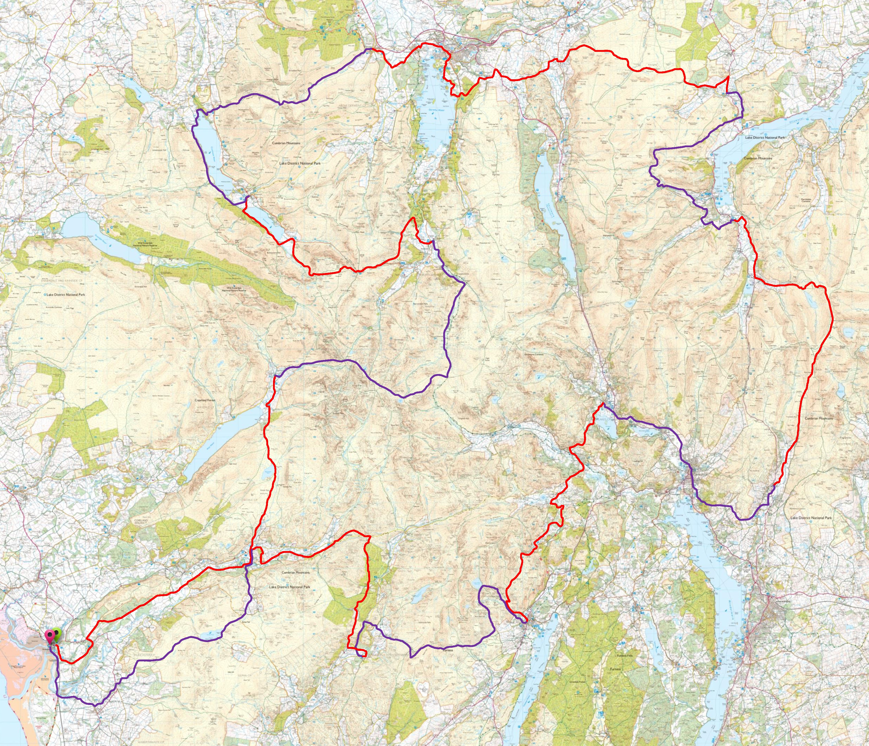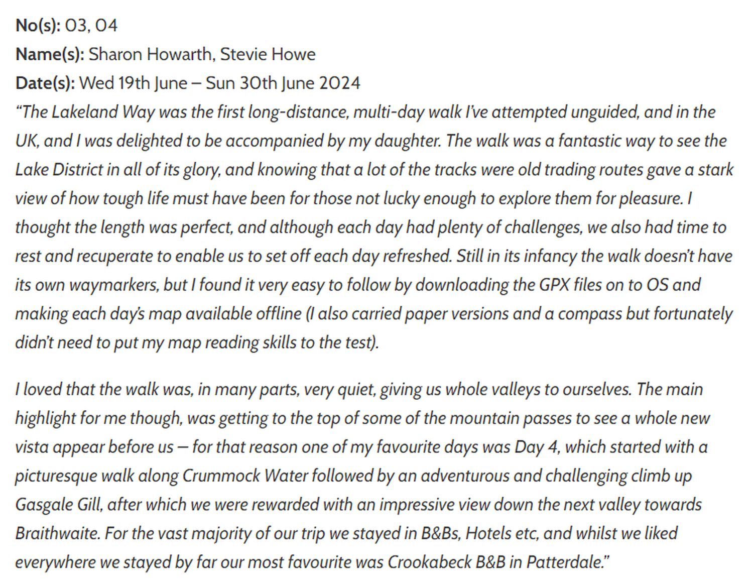 Huge congratulations to Sharon and Stevie on completing the 144 miles of the Lakeland Way on Sunday 30th June 2024. We met them at the crossing of the estuary, just a mile or so from the finish at the Ravenglass Market Cross, where we celebrated their achievement with Champaign and a few drinks at The Pennington. Well done ladies, that was tough going over that terrain in that heat. You are now the 3rd and 4th persons to complete this new long-distance walk in the Lake District. Thank you also for the walking report. What’s next? Fancy trying the running version?