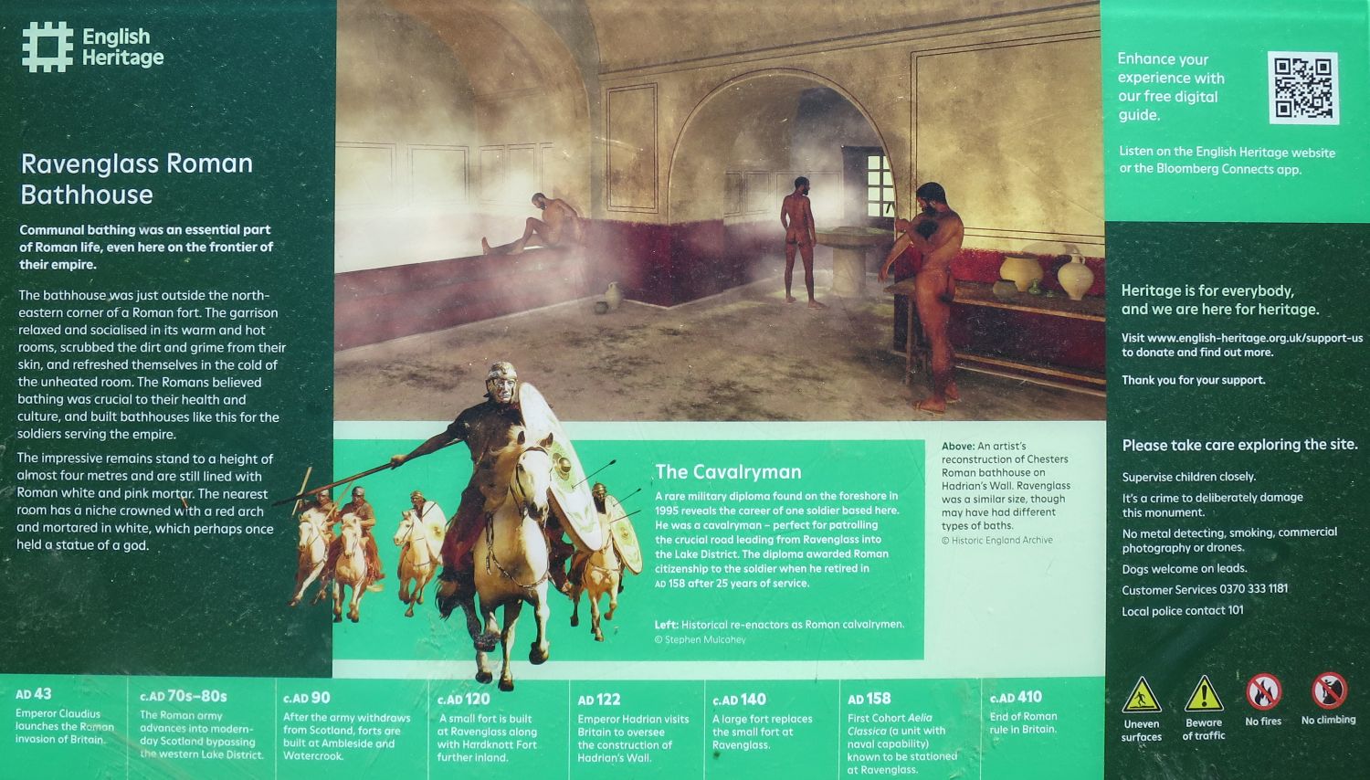I waved goodbye at the estuary, then visited the Roman Bathhouse and noticed a new information board depicting naked Roman soldiers!