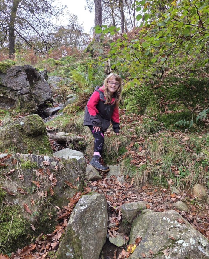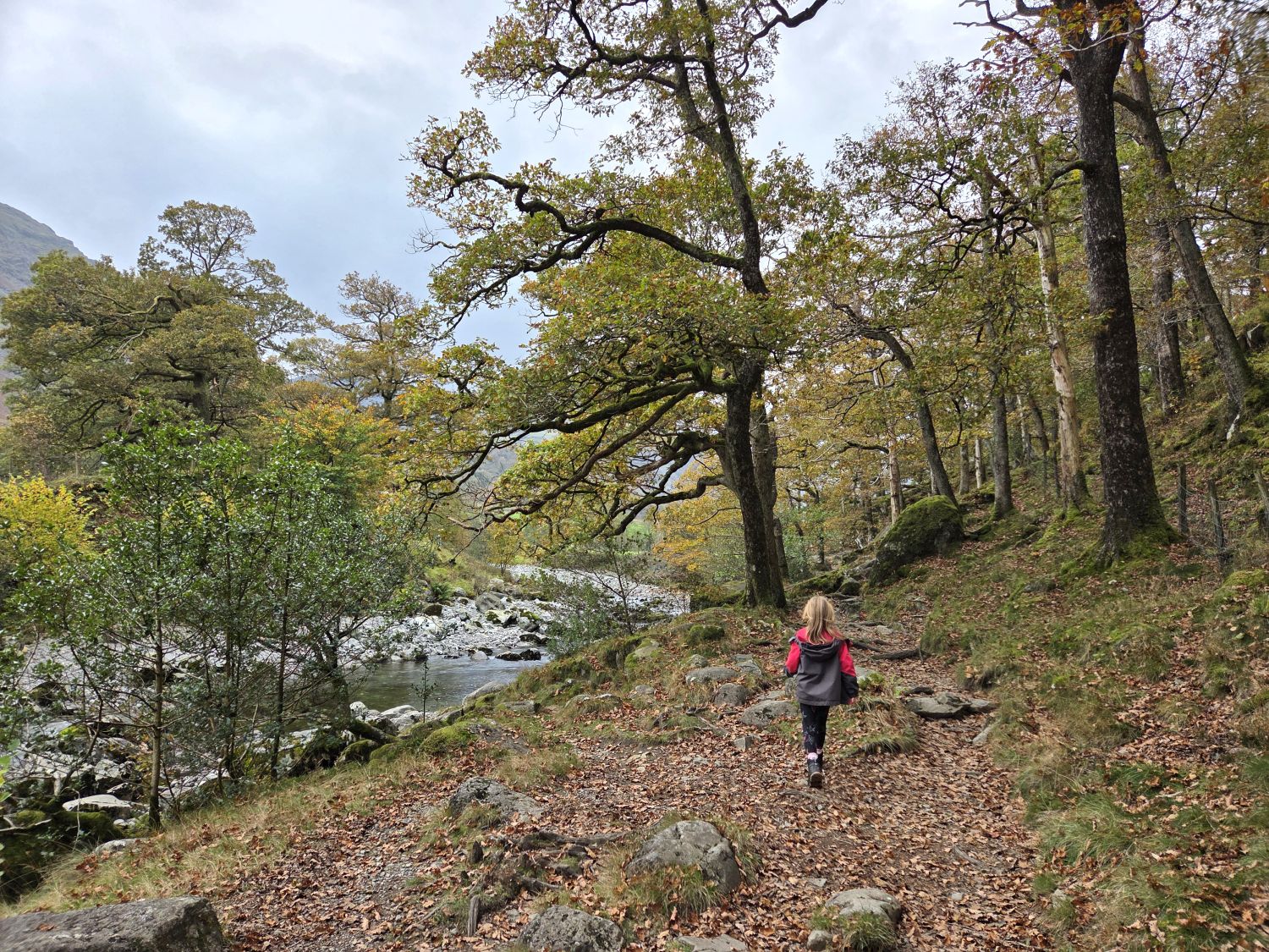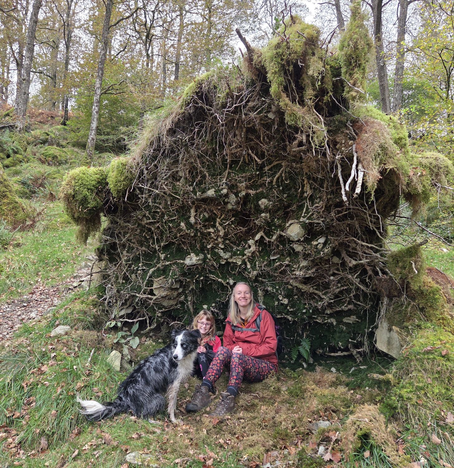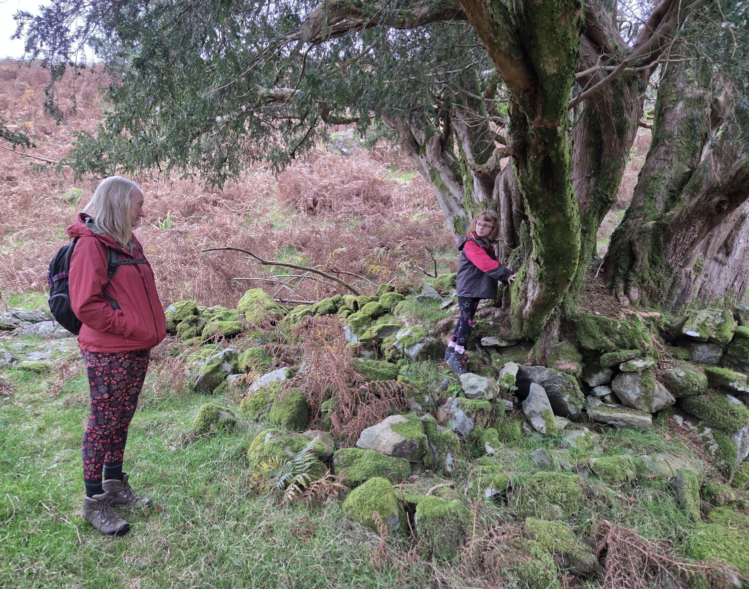 Today was a fungi-hunting day in Johnny Wood, in our favourite valley of Borrowdale. We began with a visit to the yew tree where Frankie’s ashes were scattered — during which Emily asked, “What are ashes?” So we had a lengthy chat about what happens when we die, and so on. Bless her — what a lot to take on at such a young age.