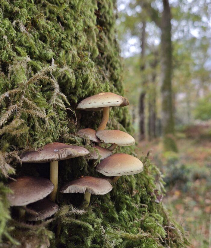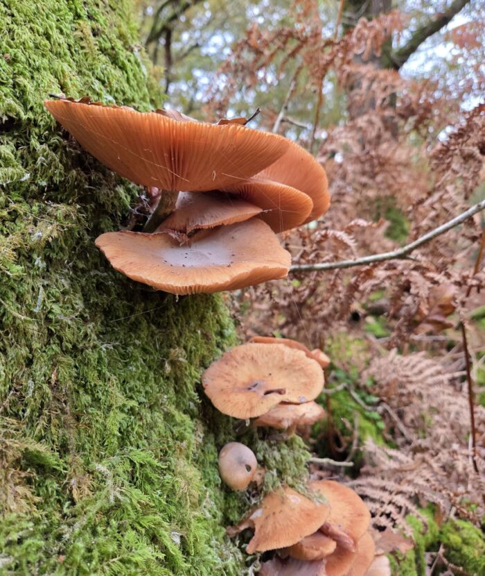 We then headed into the heart of Johnny Wood, where we came across so many species of fungi, including some fascinating polypores (bracket or shelf fungi).