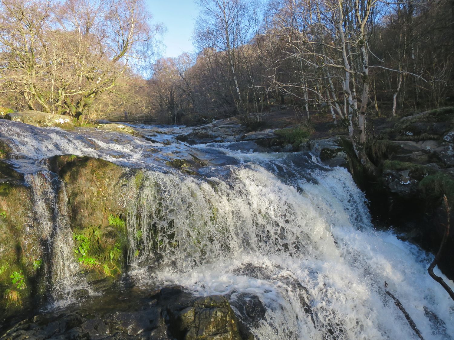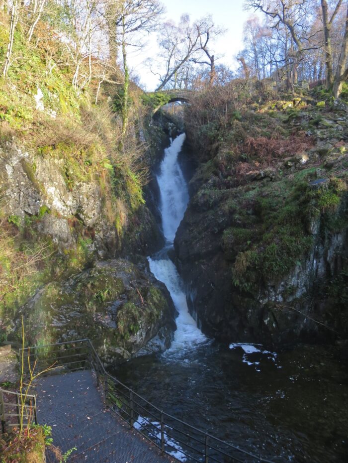 A walk up to Gowbarrow Fell from the car park at Aira Force, visiting the main waterfall and the upper falls, and returning via the terrace path overlooking Ullswater.