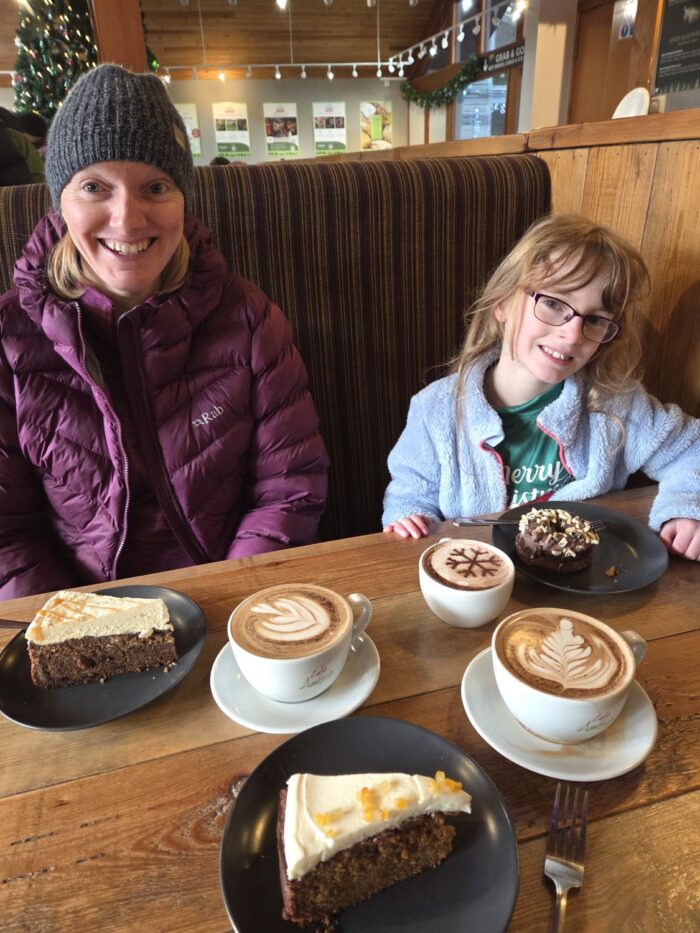 We finished the walk with a selection of cakes, two choffees, and a hot chocolate.