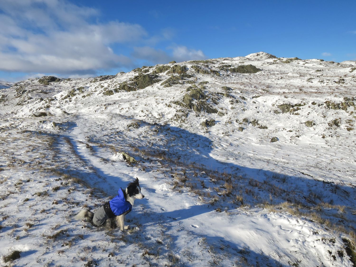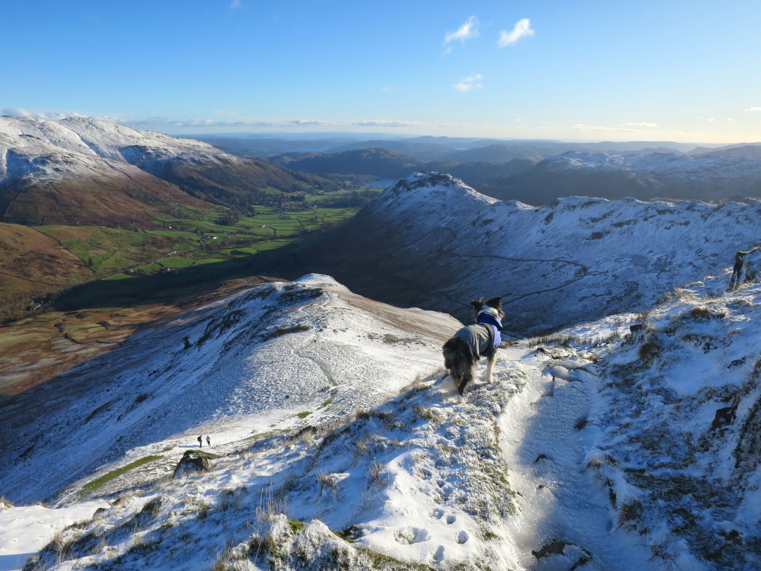 I just want to share these photos of Tika on the Greenburn Round today — before I collapse on the settee! He’s becoming a proper mountain dog now and getting used to the terrain and weather patterns that Lakeland has to offer. Tika’s recall has always been good, but he’s still a bit over-friendly with other people. He waits for them to say hello and then darts towards them, so I still keep him on the lead sometimes when folk are approaching. At all other times he’ll stay by my feet on command — he just loves people.