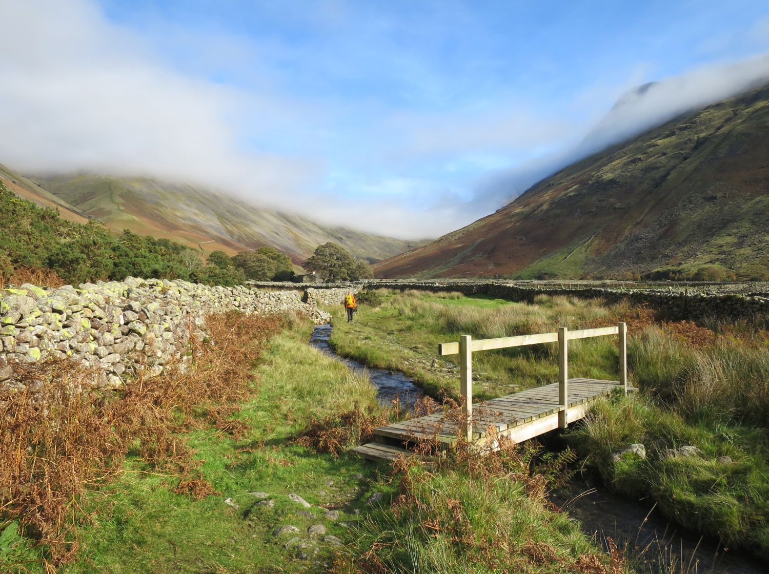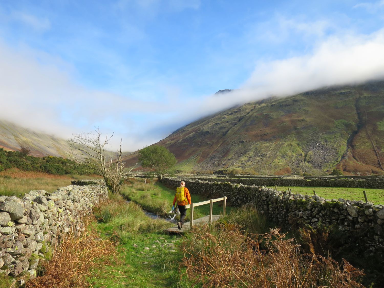 Today we visited Wasdale Head to walk a short recce for the Lakeland Way, between The Wasdale Head Inn and Burnthwaite Farm B&B and Holiday Cottage. This route along Fogmire Beck offers a far more interesting approach to the farm than the stony track that the route follows at present. A route update and more information will be added to the Lakeland Way website very soon.