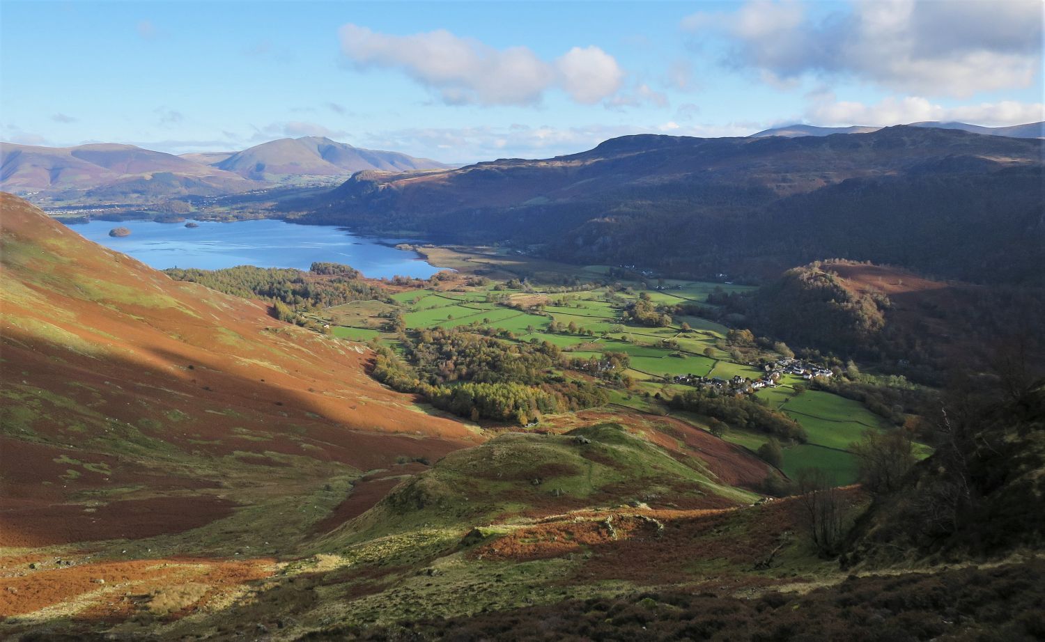 Looking back to Derwent Water and the village of Grange from Cockley How