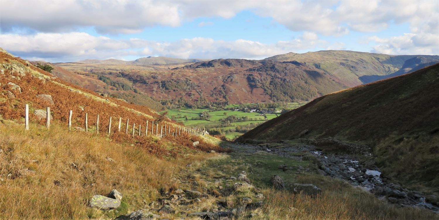 The village of Rosthwaite in Borrowdale from the ‘old quarry road’