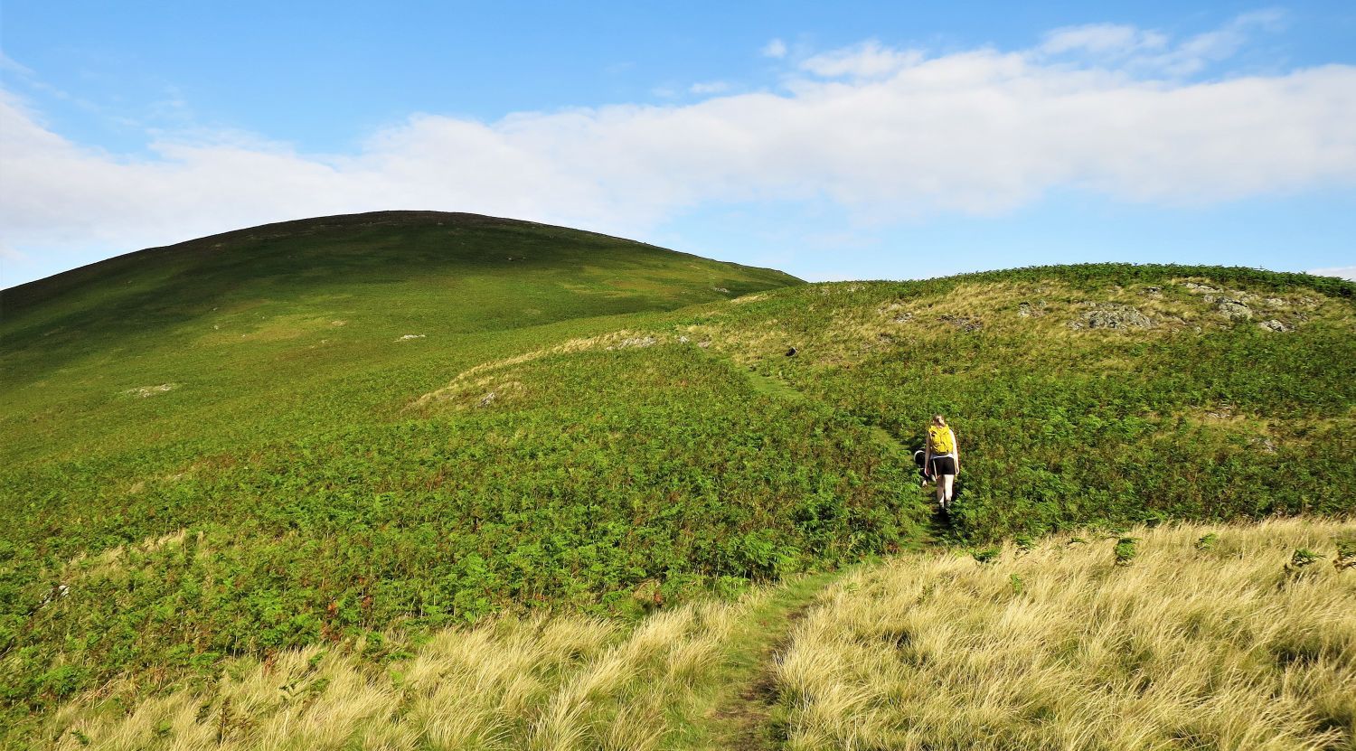 The initial climb of Bowscale Fell’s east ridge is a rough steep stony track through gorse and bracken.
