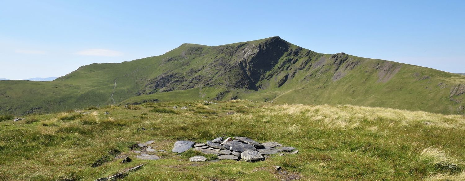 Once the main ridge is gained, follow the path slightly left to visit a well-built cairn with a splendid view.