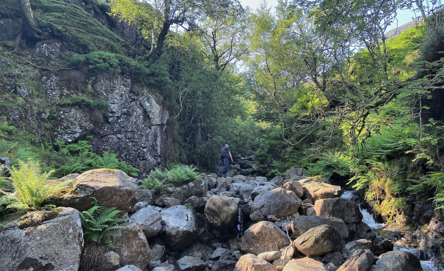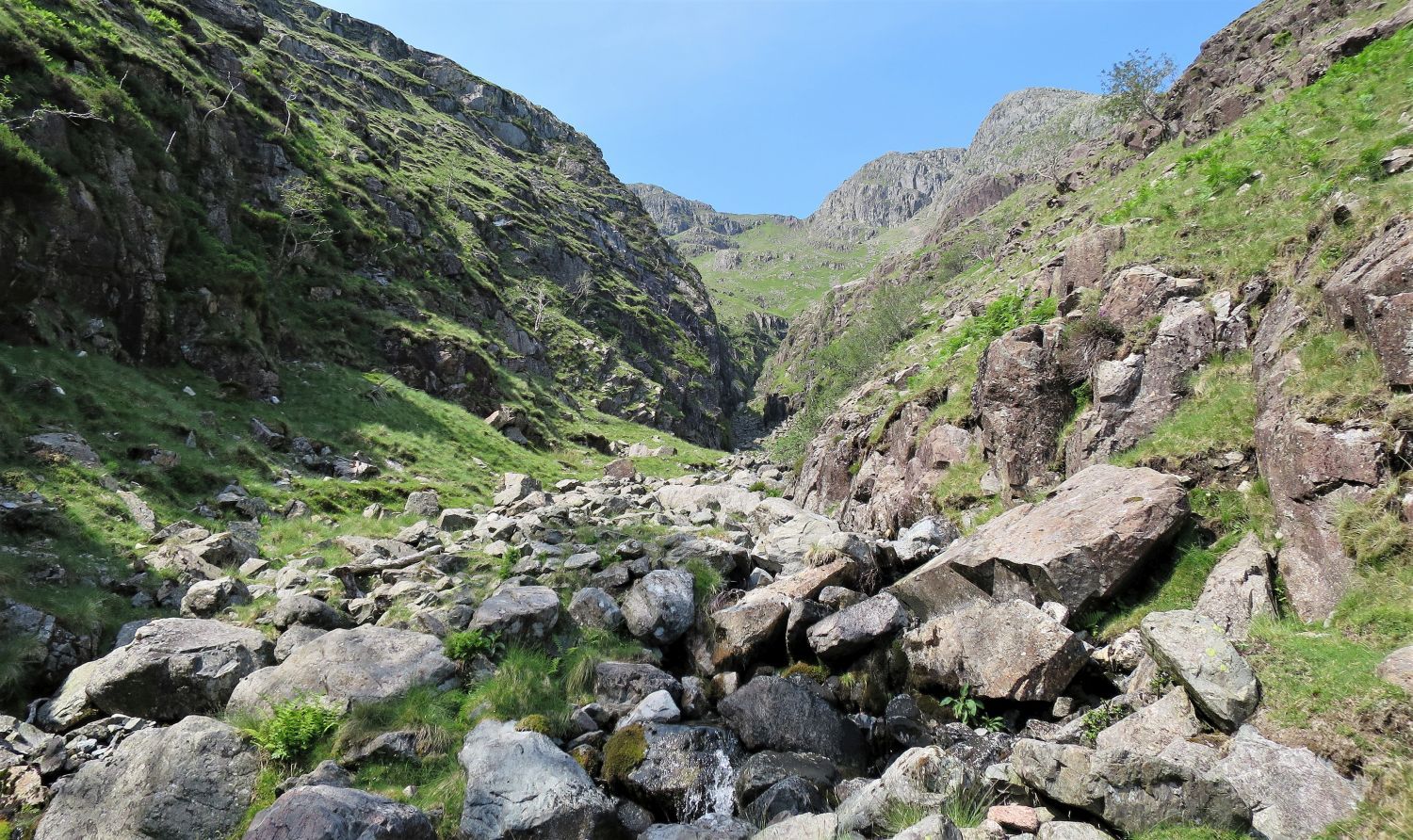 Oxendale Gill contains fairly easy scrambles over large boulders.