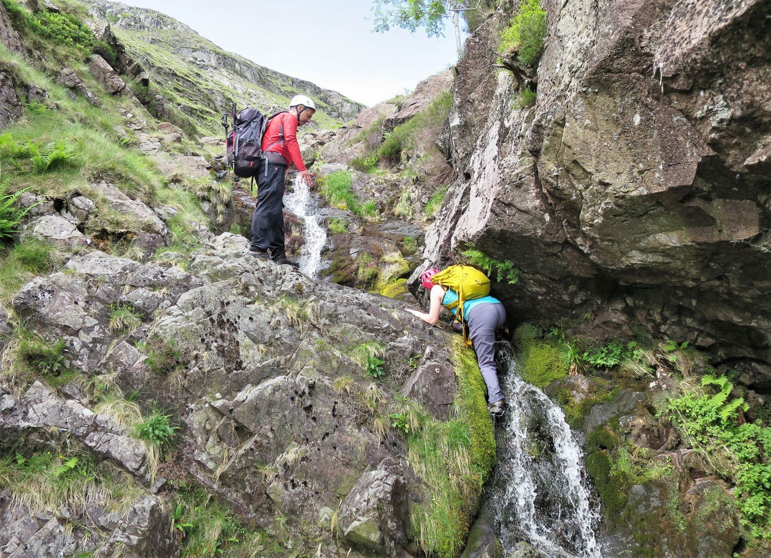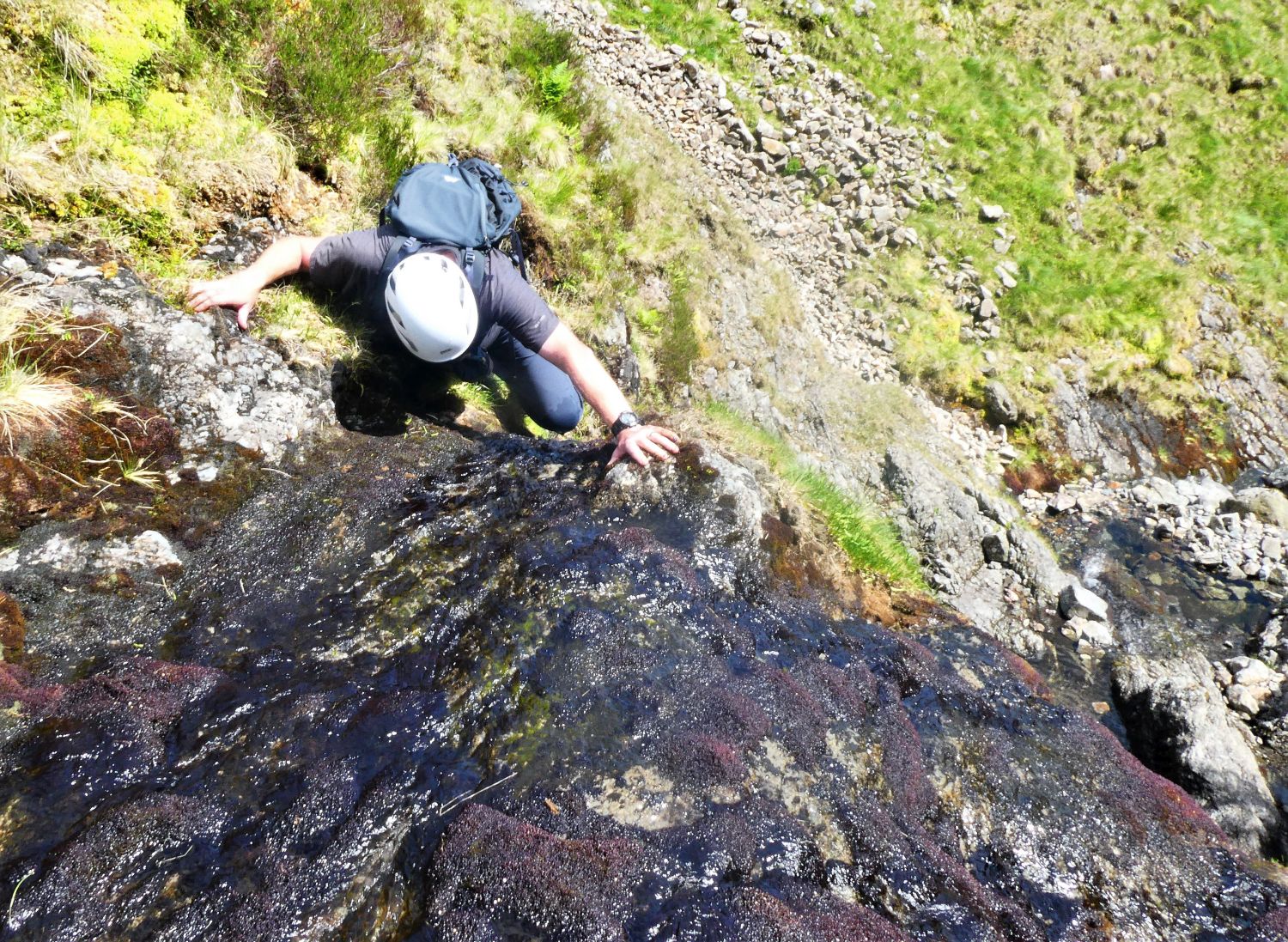 The Chute, in a nice way, is very long, and at its head is this wonderful waterfall. There are two options here: climb the rock on the left, which is easy, or scramble directly up the waterfall.