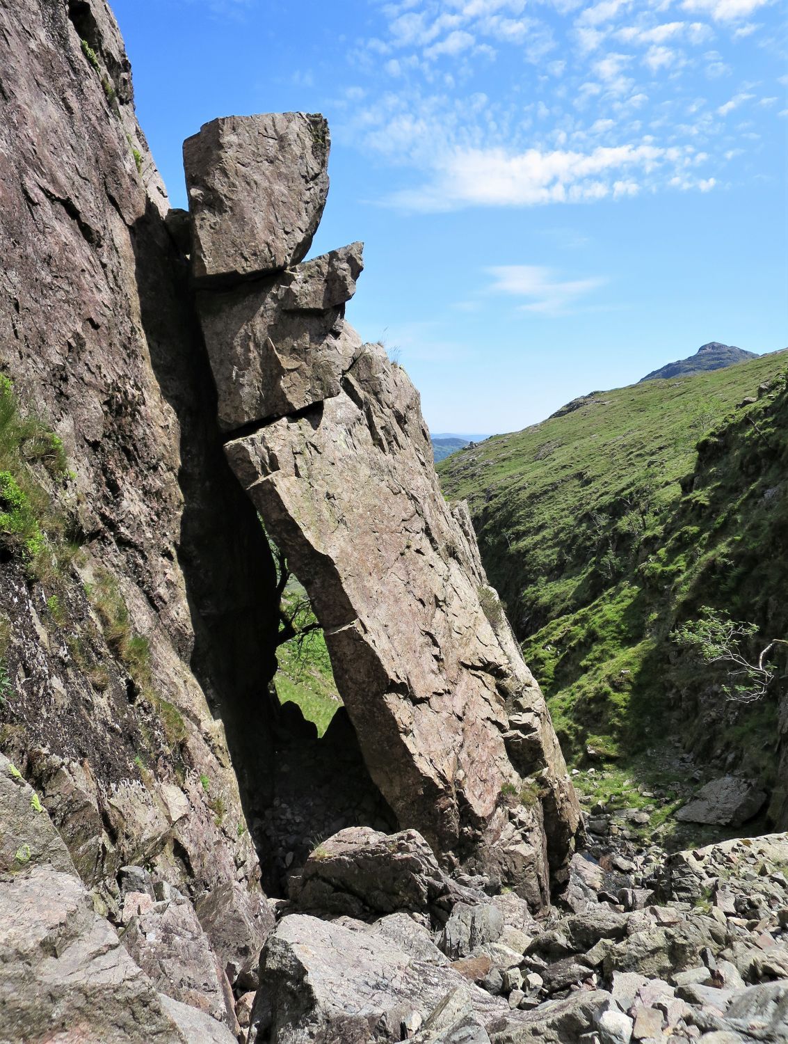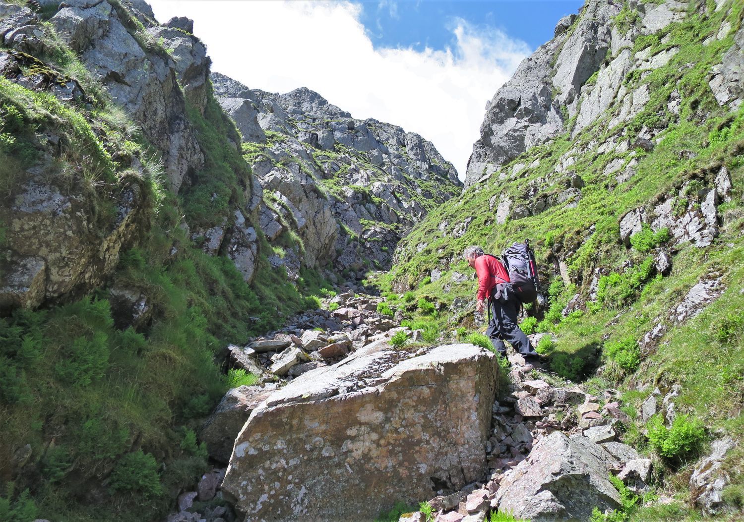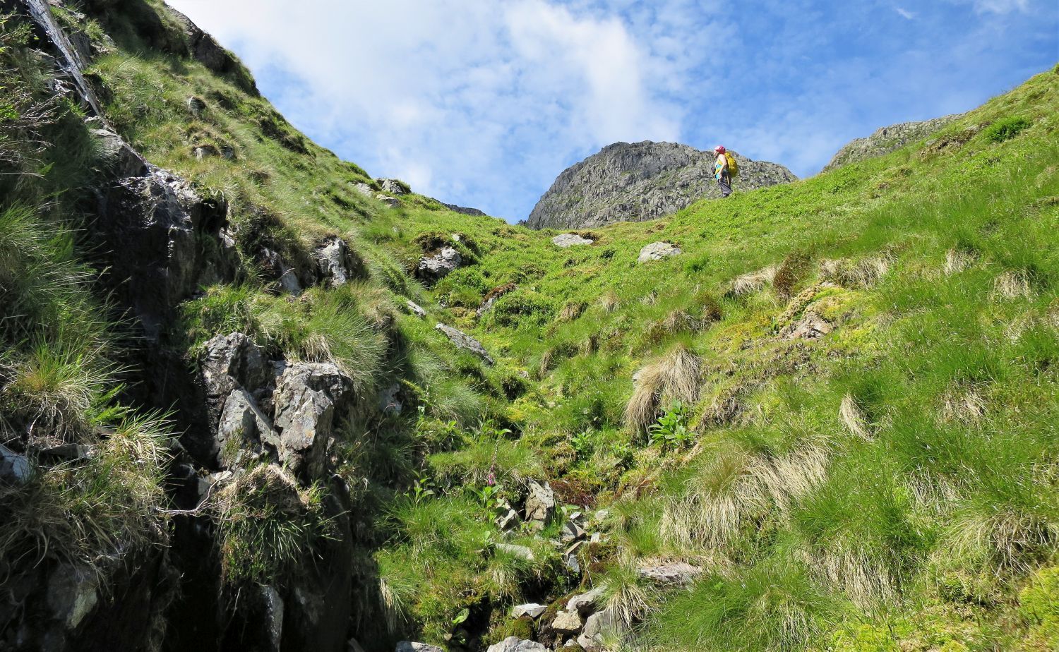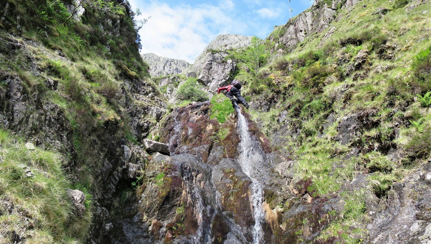 The climb up this gully is far more exhilarating than it first appeared from below.