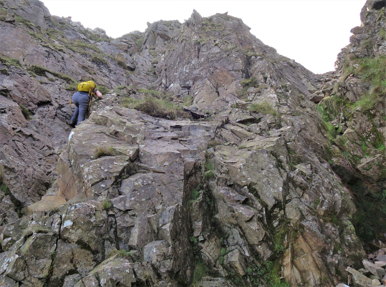Near the top, the last section requires a scramble up a narrow gully. Thankfully we have Frankie to keep an eye on our progress.