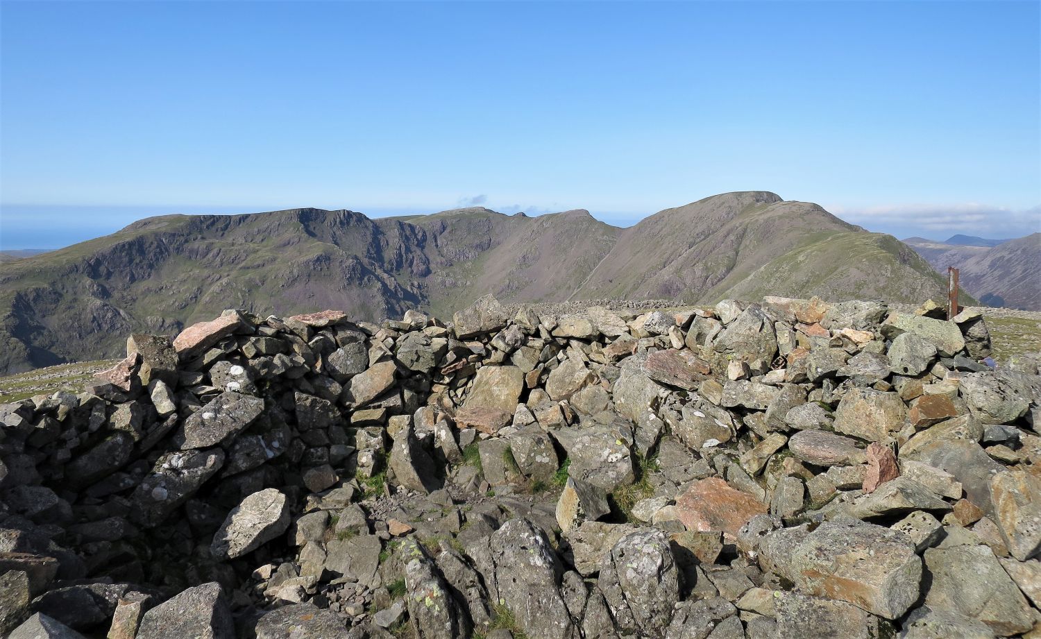 A small outcrop mounted with a cairn, 150 yards east of the main summit, provides this splendid view of the Gables.
