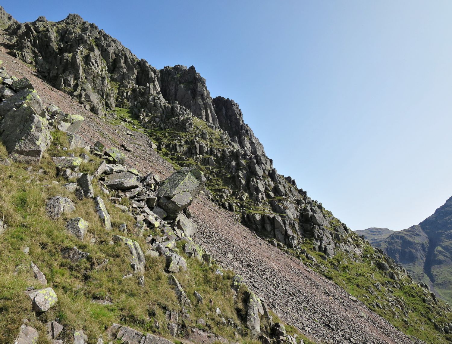 Initially the West Traverse is a little tricky to locate from Beck Head, however, look ahead towards the scree slope and a route materializes.