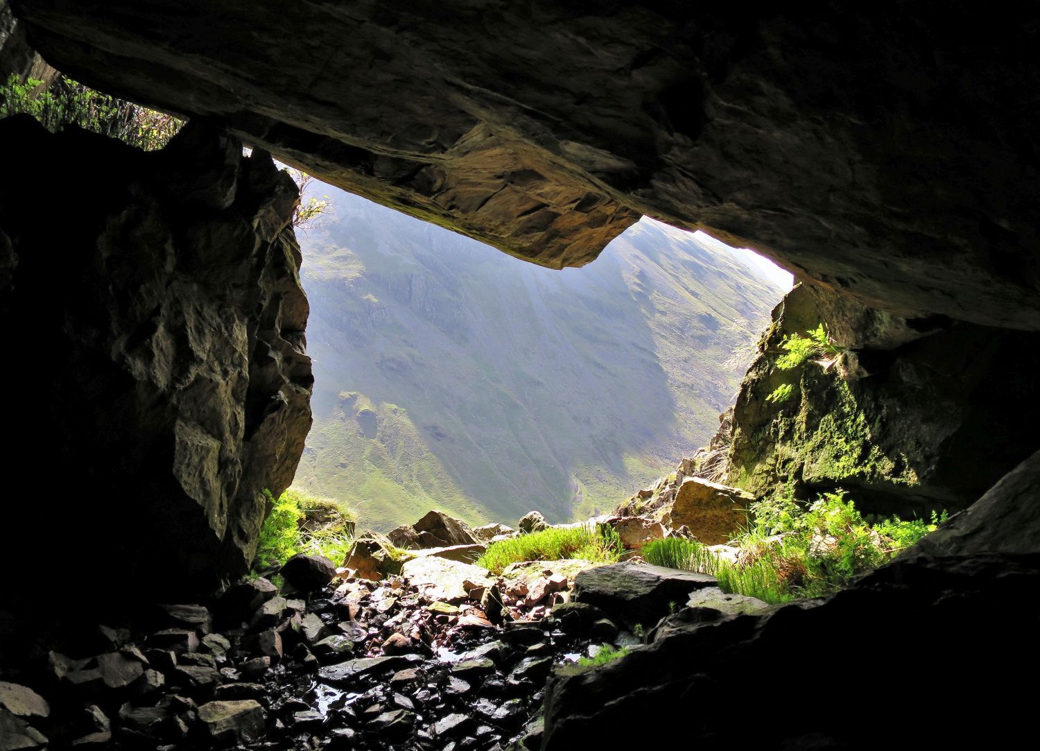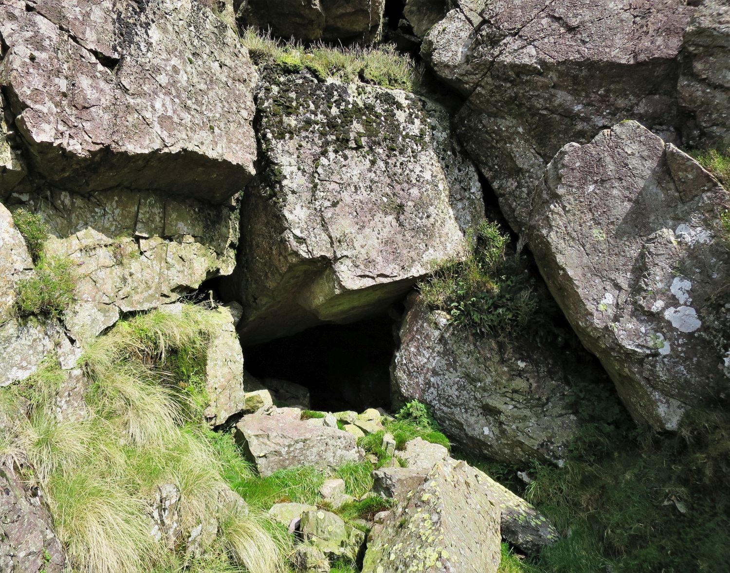 Just around the corner of the first crag, the ‘water-hole’ is easily missed. There is enough room inside for two people, and there’s no better place in Lakeland to taste mountain water. A small trickle from the upper cavities, even during the driest of months, is enough to replenish the water bottles. It’s remarkable, with the exception of Styhead Tarn and Arron Slack, that the three miles of the Gable Girdle path has no other water source.