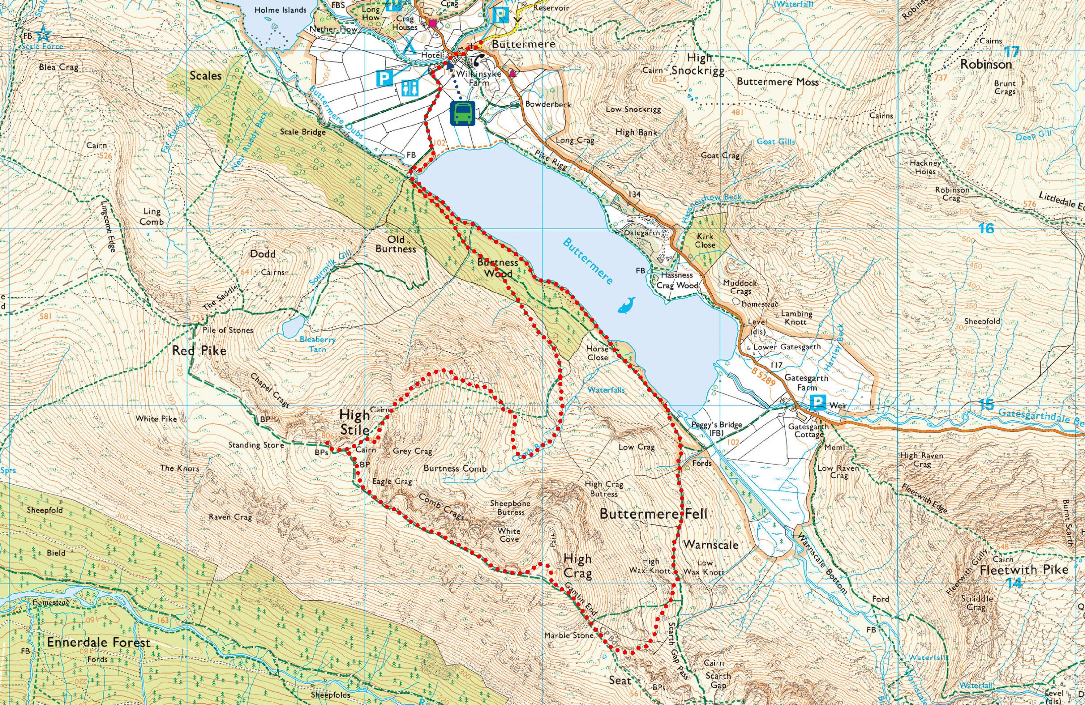 The village of Buttermere is a great starting point for this wild camp, with the Fish Inn being the choice for a meal before our journey; the benches outside providing a great view of our route up High Stile’s north-east Ridge.